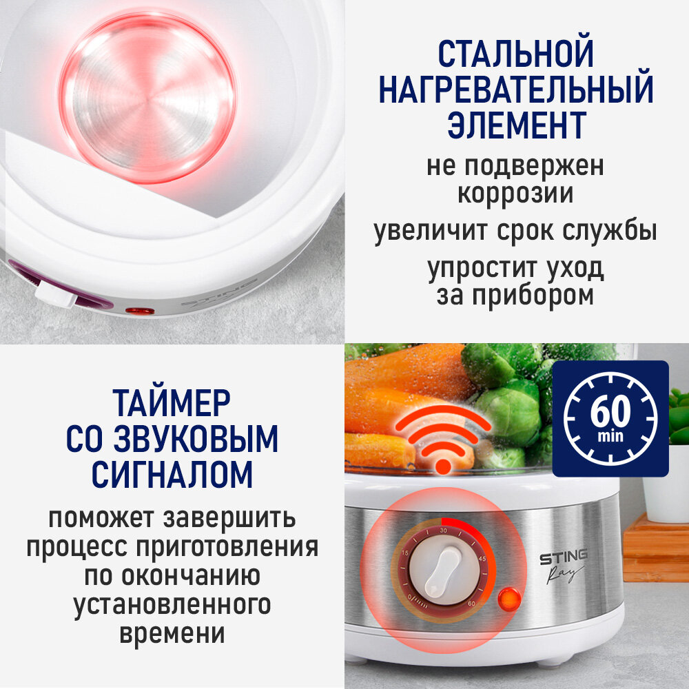Пароварка мантоварка STINGRAY ST-FS753A фиолетовый чароит интересное: