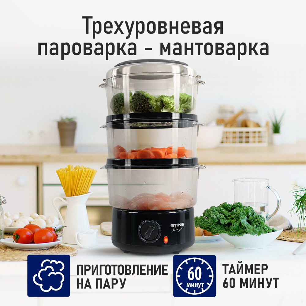 Купить Пароварка мантоварка STINGRAY ST-FS752A черный жемчуг