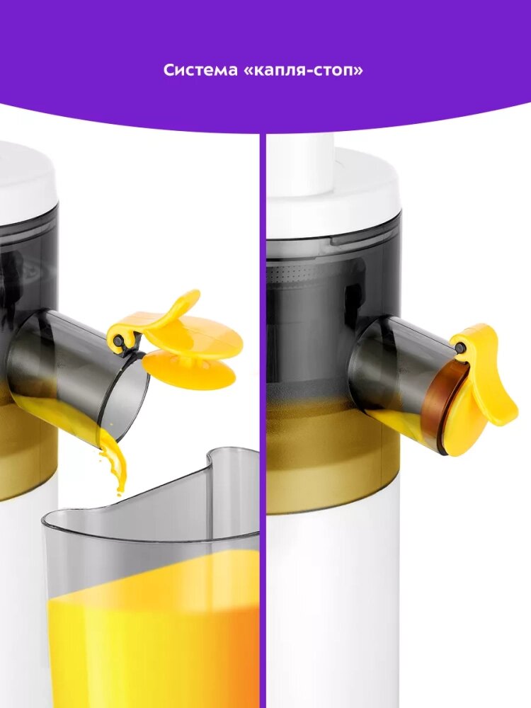 | Особенности | автоматический выброс мякоти / реверс / система «капля-стоп» |