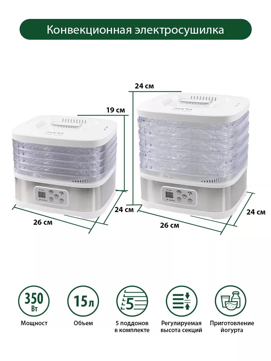 Дегидратор сушилка для овощей электросушилка MARTA MT-1959 5 поддонов белый жемчуг интересное:
