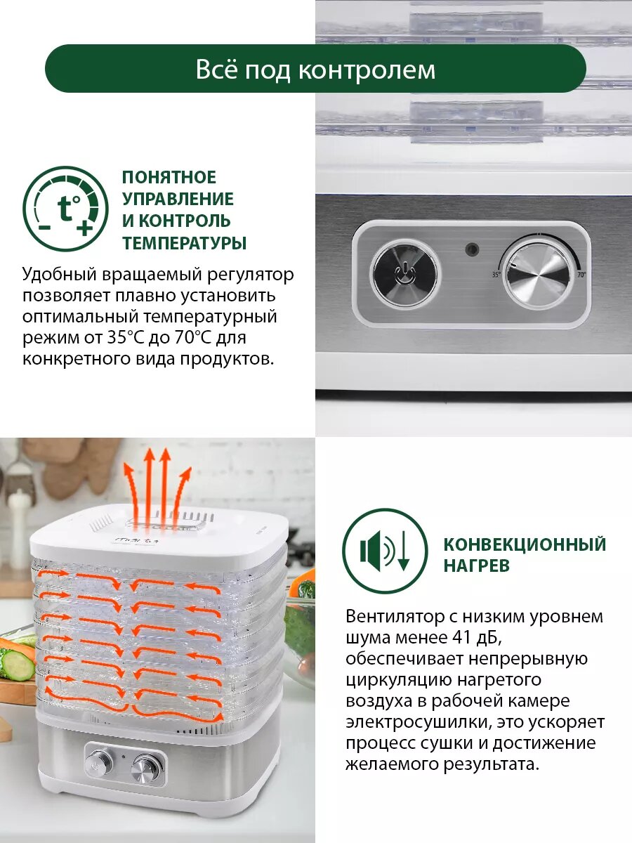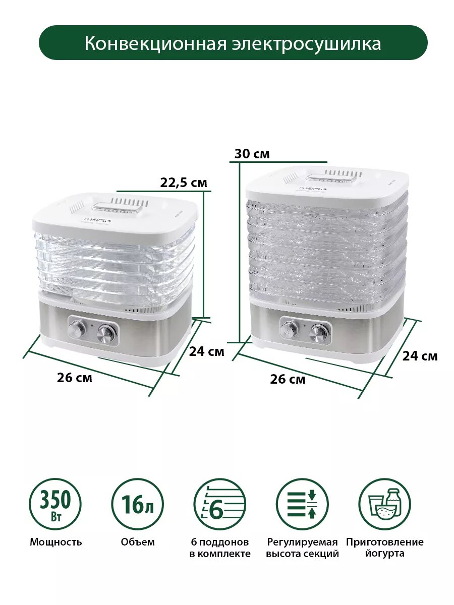 Сушилка для Овощей и фруктов 6 разборных поддонов 24x26 см