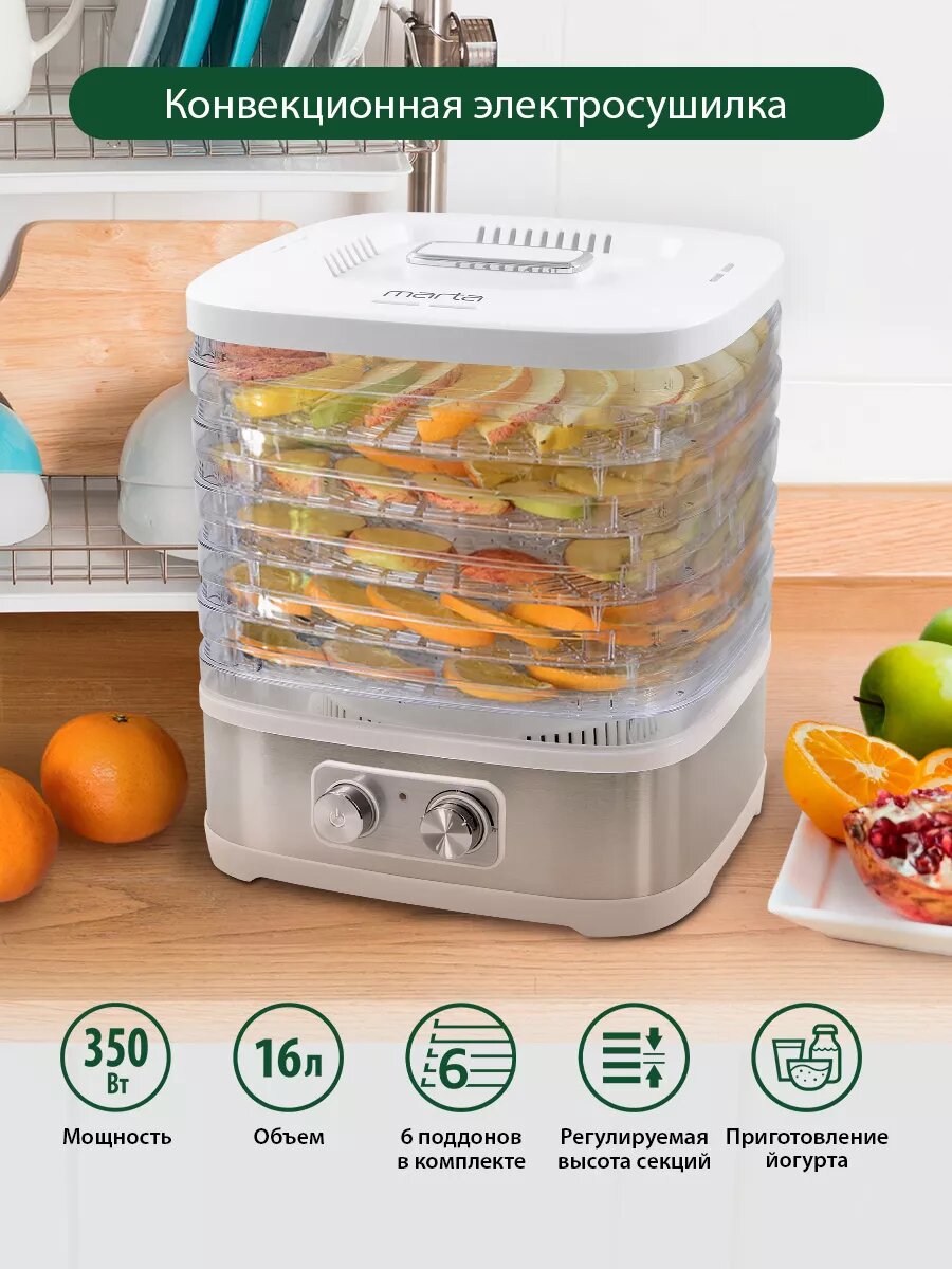 Купить Дегидратор сушилка для овощей электросушилка MARTA MT-1876 6 поддонов белый жемчуг
