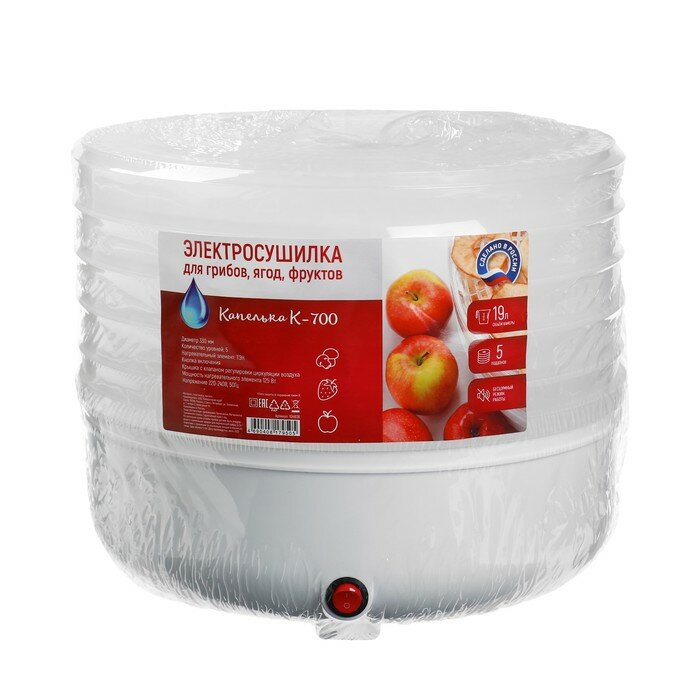 Капелька Сушилка для овощей и фруктов Капелька К-700, 125 Вт, 5 ярусов, 19 л, белая