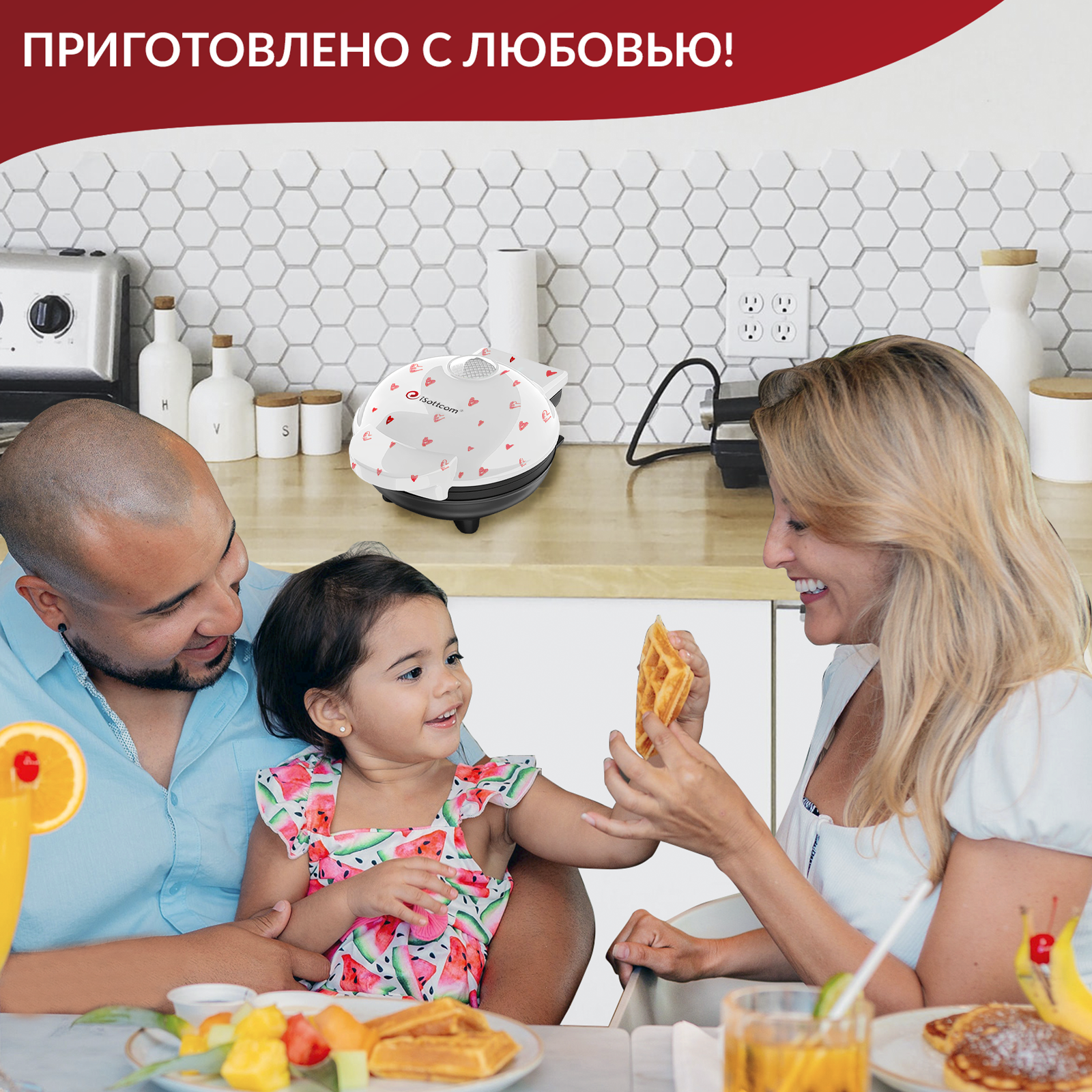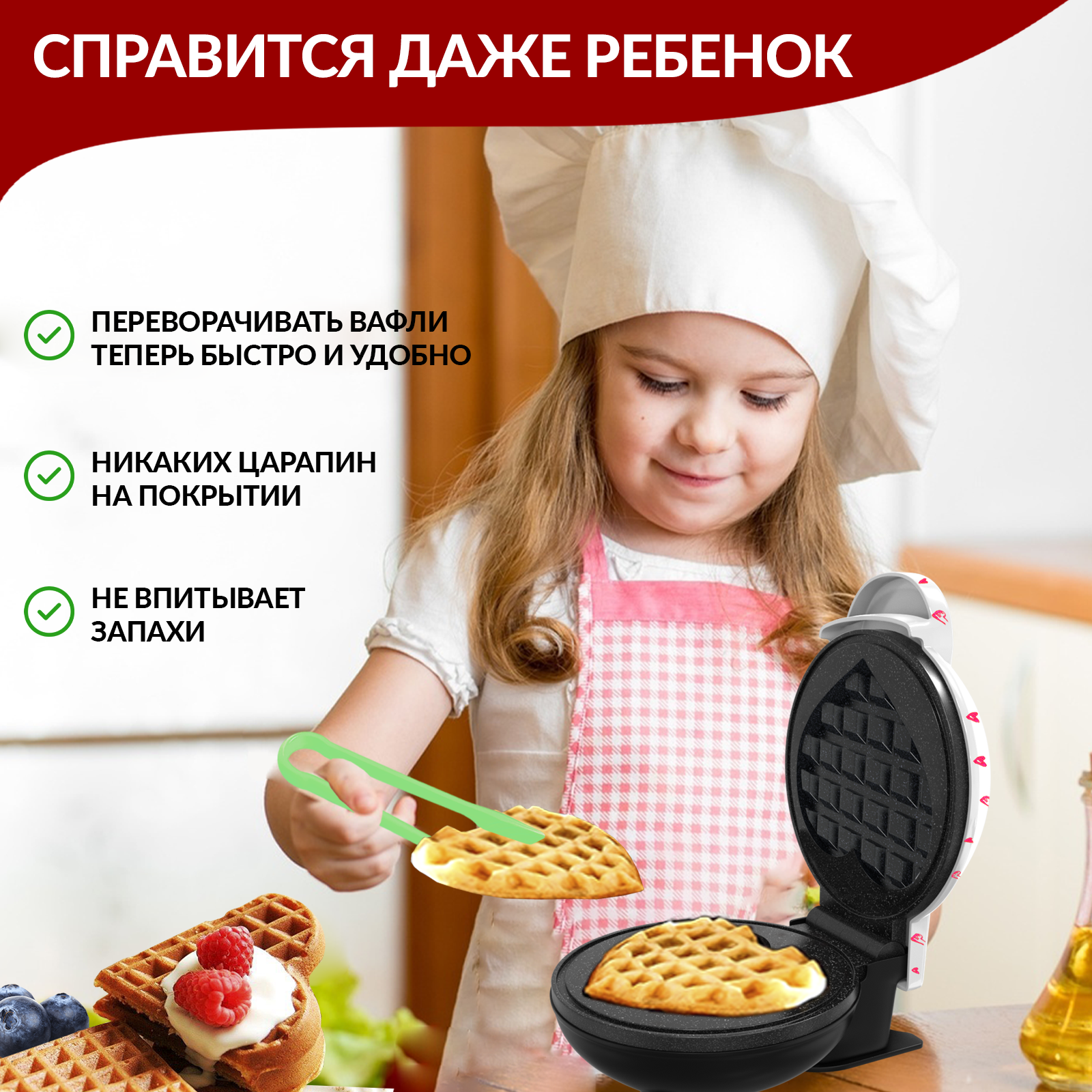 Вафельница-сердце iSottcom электрическая для венских и бельгийских вафель красная с книгой рецептов. Щипцы в подарок