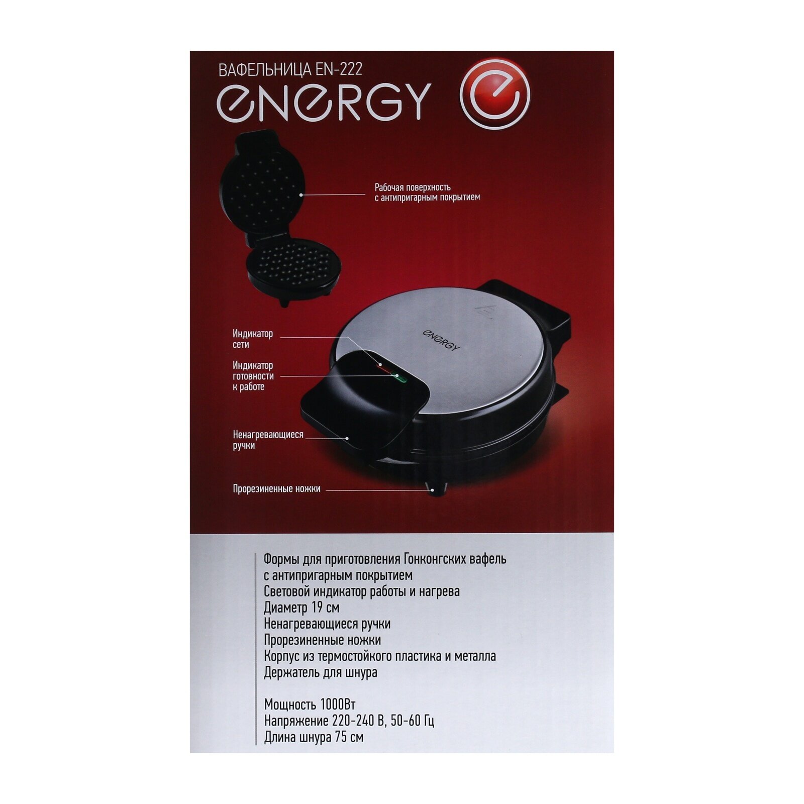 Вафельница электрическая ENERGY EN-222 19см, 1000Вт