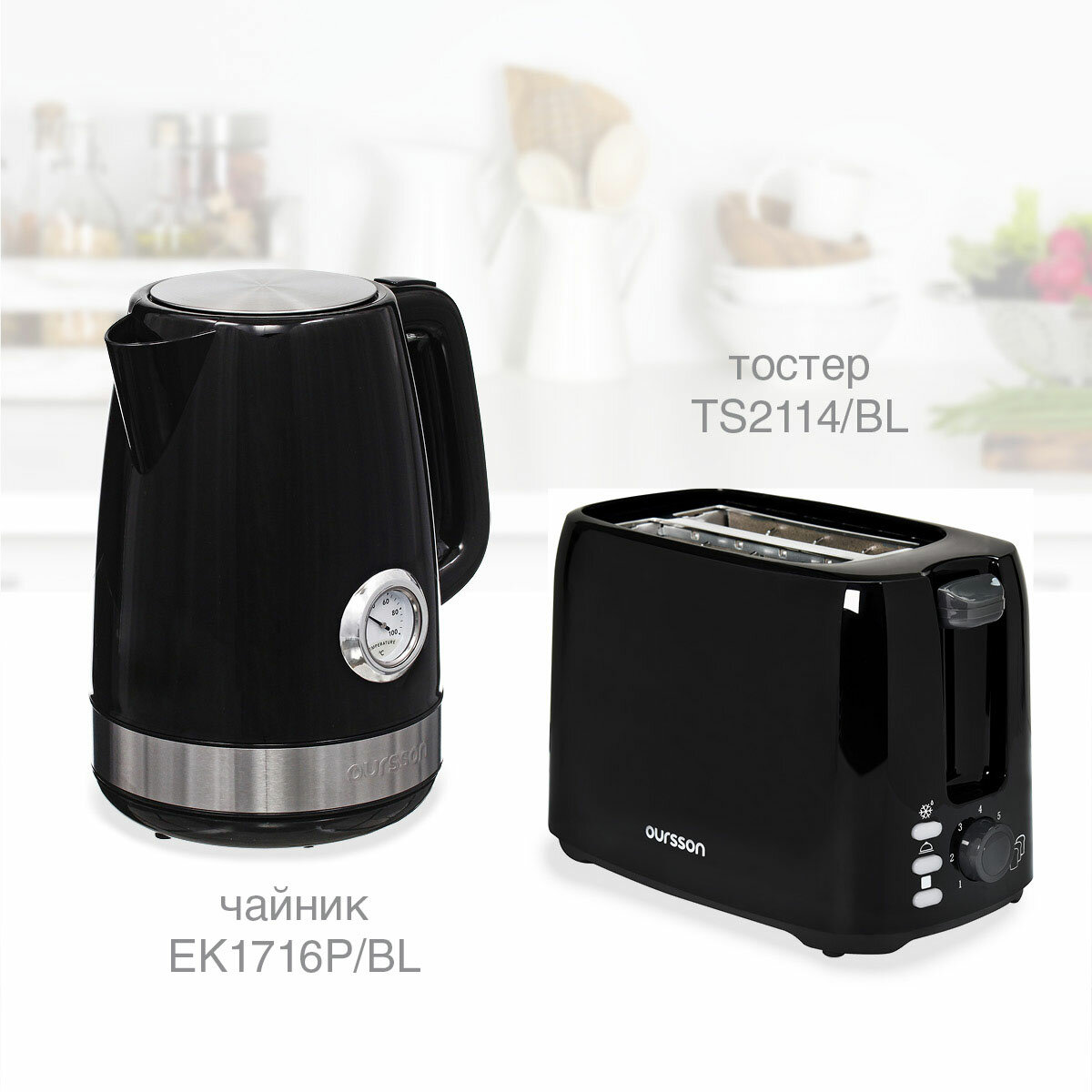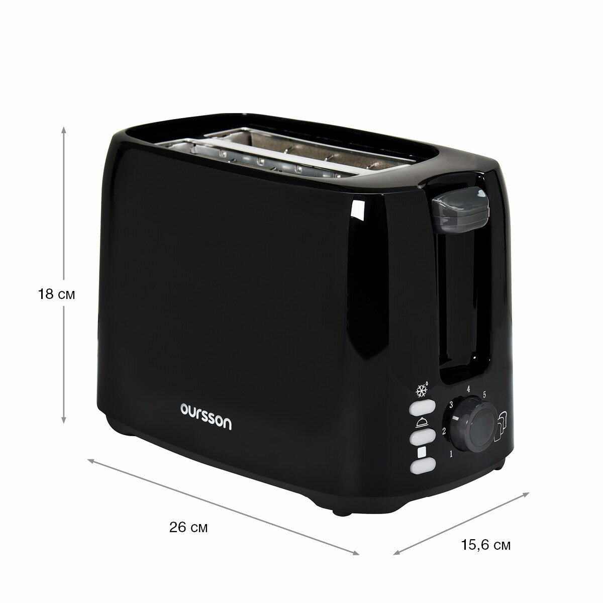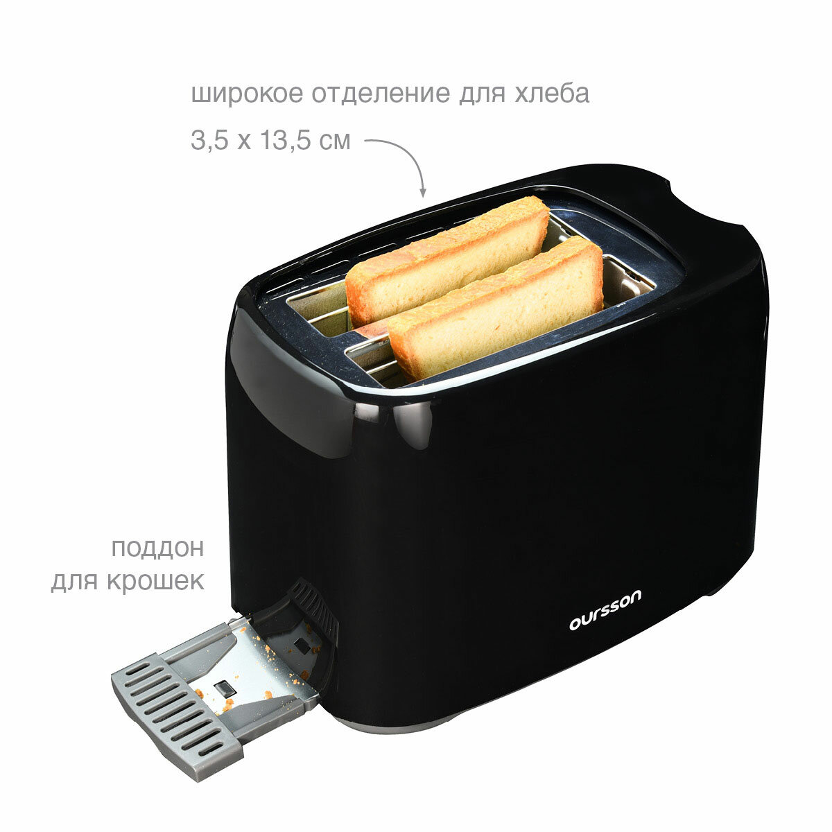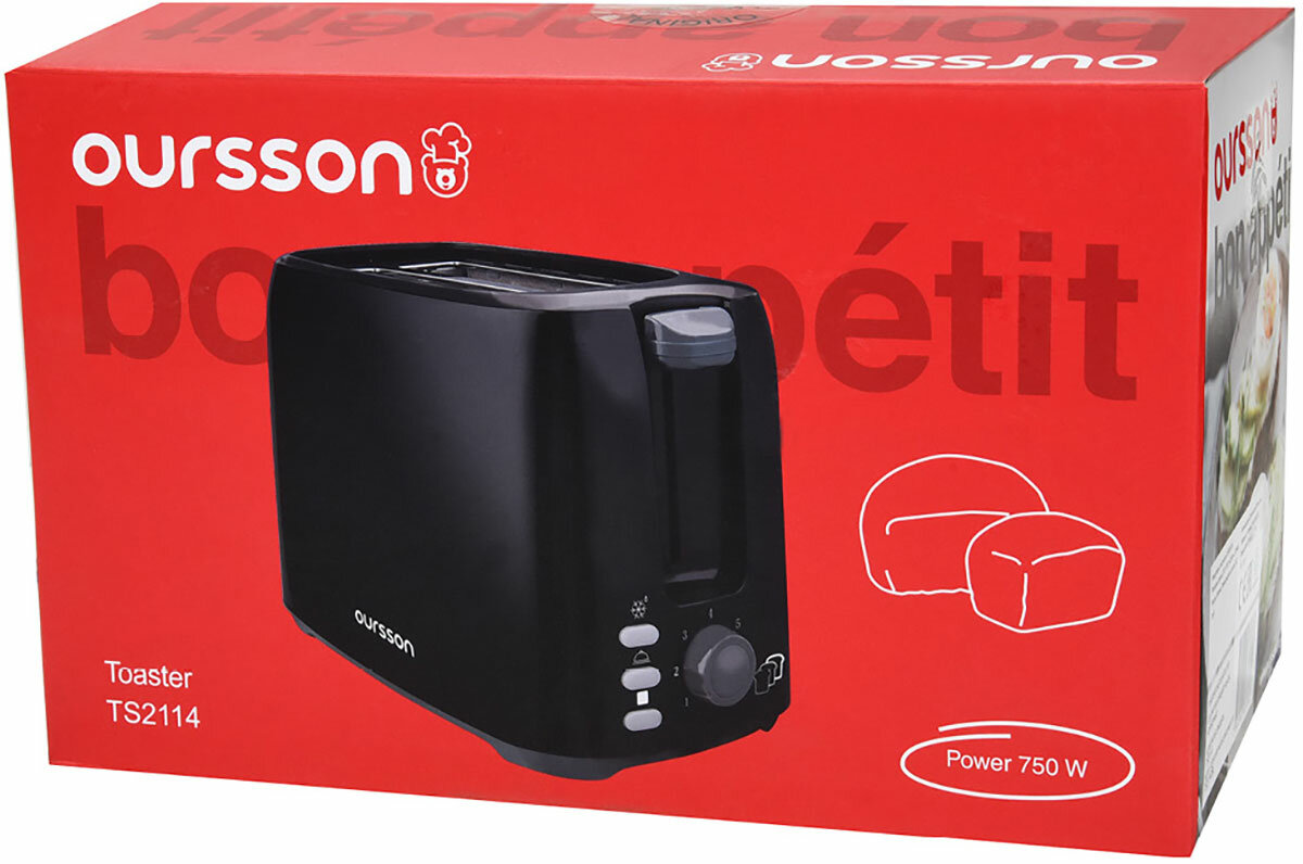 Тостер Oursson TS2114 BL, 2 тоста, механическое управление, черный