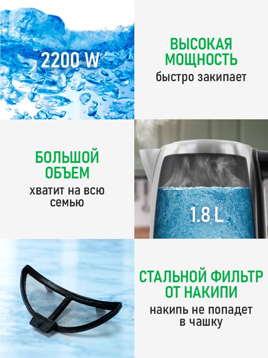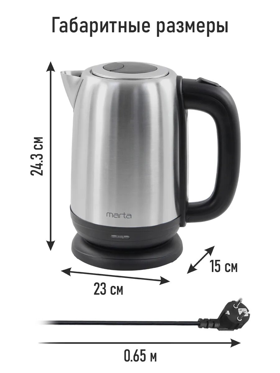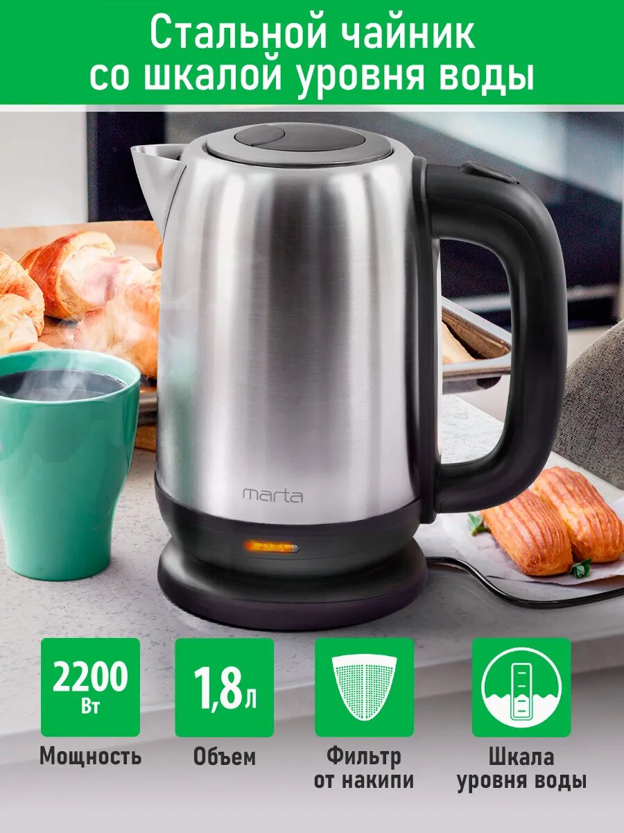 Электрический чайник MARTA MT-4630 черный металлический с фильтром, 1.8 л интересное: