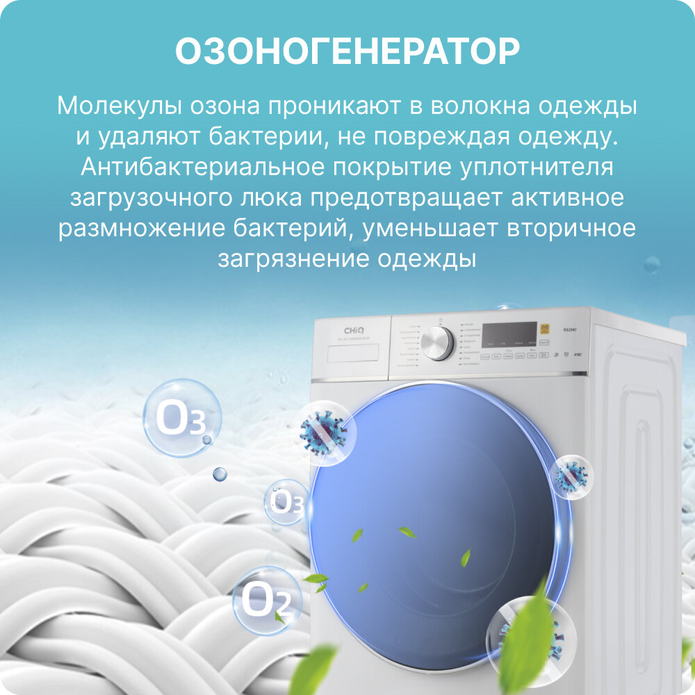 Стиральная машина CHiQ CFL100-14596DHALIM1W с сушкой, 10 кг, 1400 об/мин, инверторный мотор, 16 прогр., подсветка, белая
