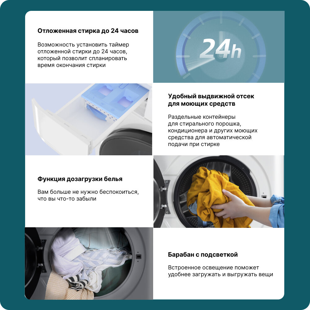 | Дополнительные функции | выбор скорости отжима / выбор температуры стирки / отложенный старт / очистка барабана |