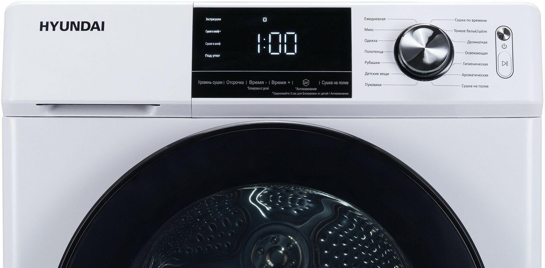 СохранитьСушильная машина HYUNDAI DFE 9401 с тепловым насосом, глубина 62 см, загрузка 10 кг, отсрочка старта, индикация влажности белья, белый интересное: