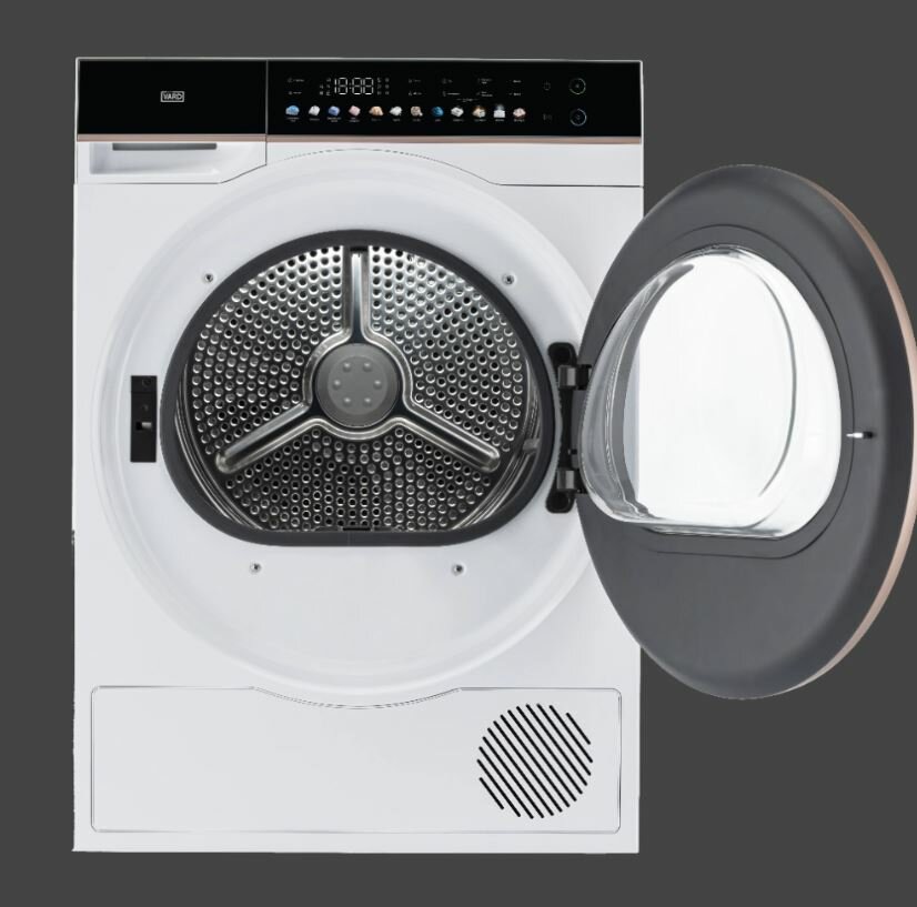 Сушильная машина Vard VTH 61B 10 кг, 11 режимов сушки, ворсовый фильтр, контроль влажности, отложенный старт, предотвращение сминания, сигнал окончания сушки, установка времени завершения стирки