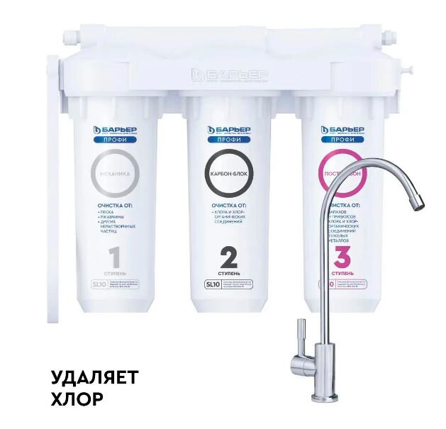 Фильтр под мойку для очистки воды трехступенчатый БАРЬЕР профи Стандарт Лайт, удаляет хлор