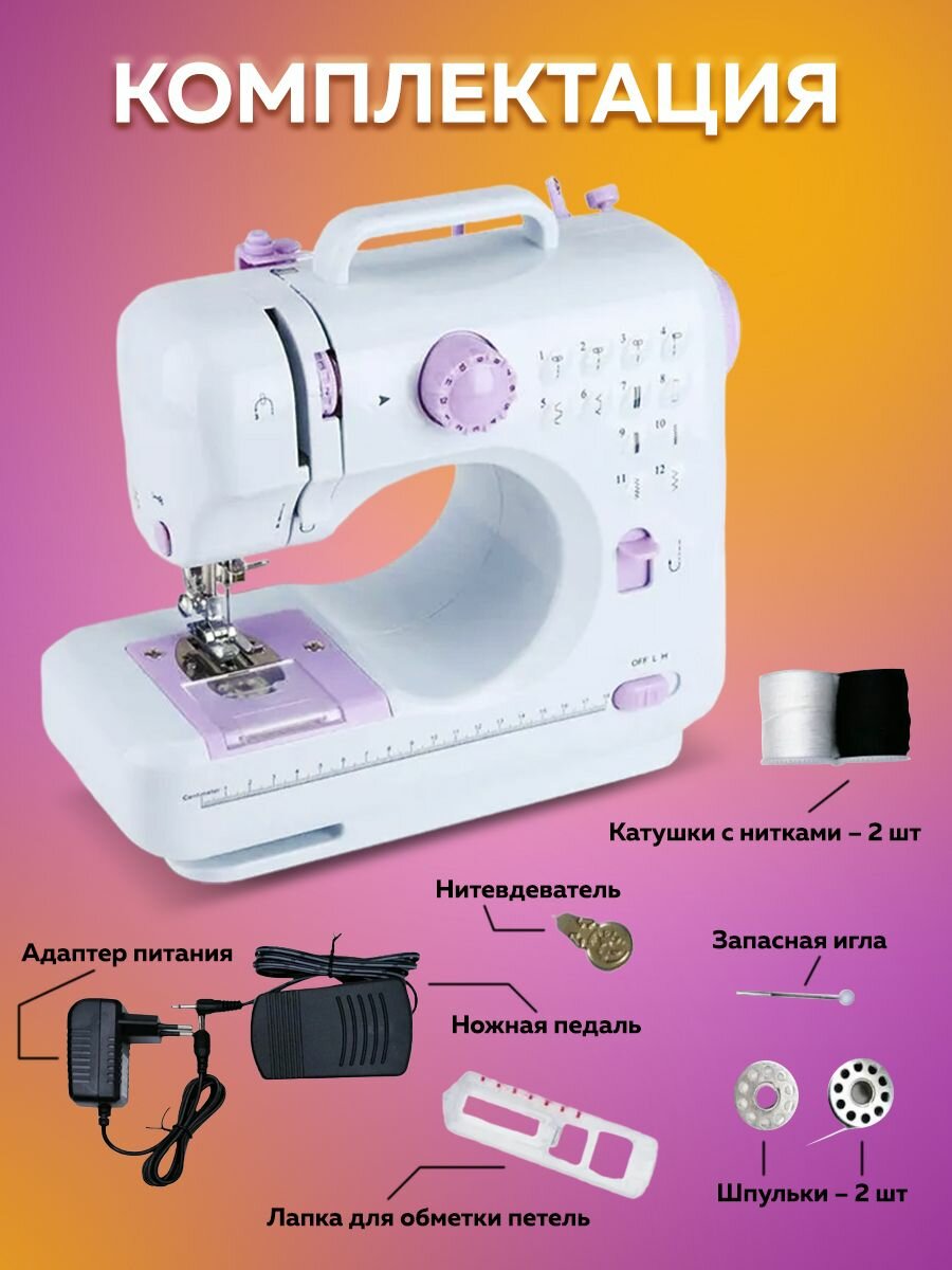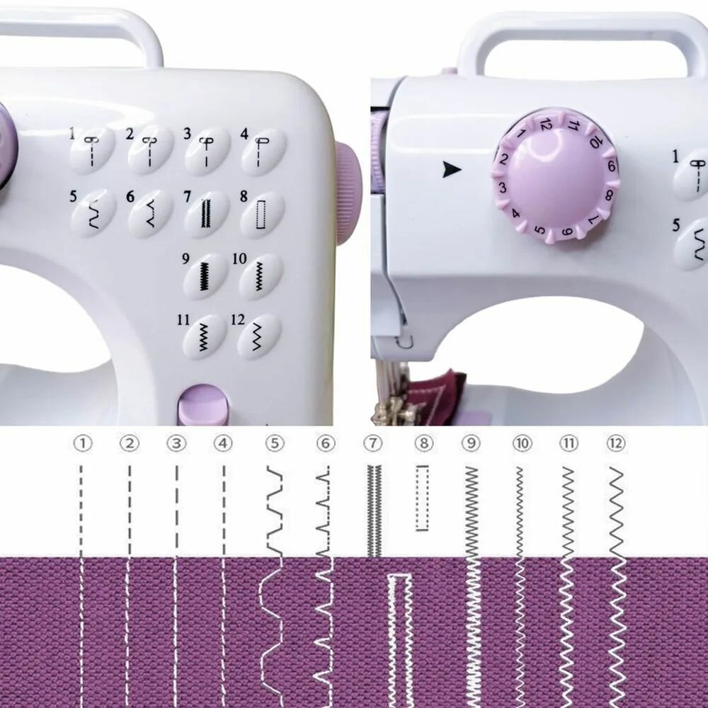 Купить Портативная швейная машинка электрическая от сети и батареек Classmark WJ23071901, реверс, регулировка скорости, нитевдеватель и подсветка, полуавтомат, 350 стежков/мин, 12 видов строчек