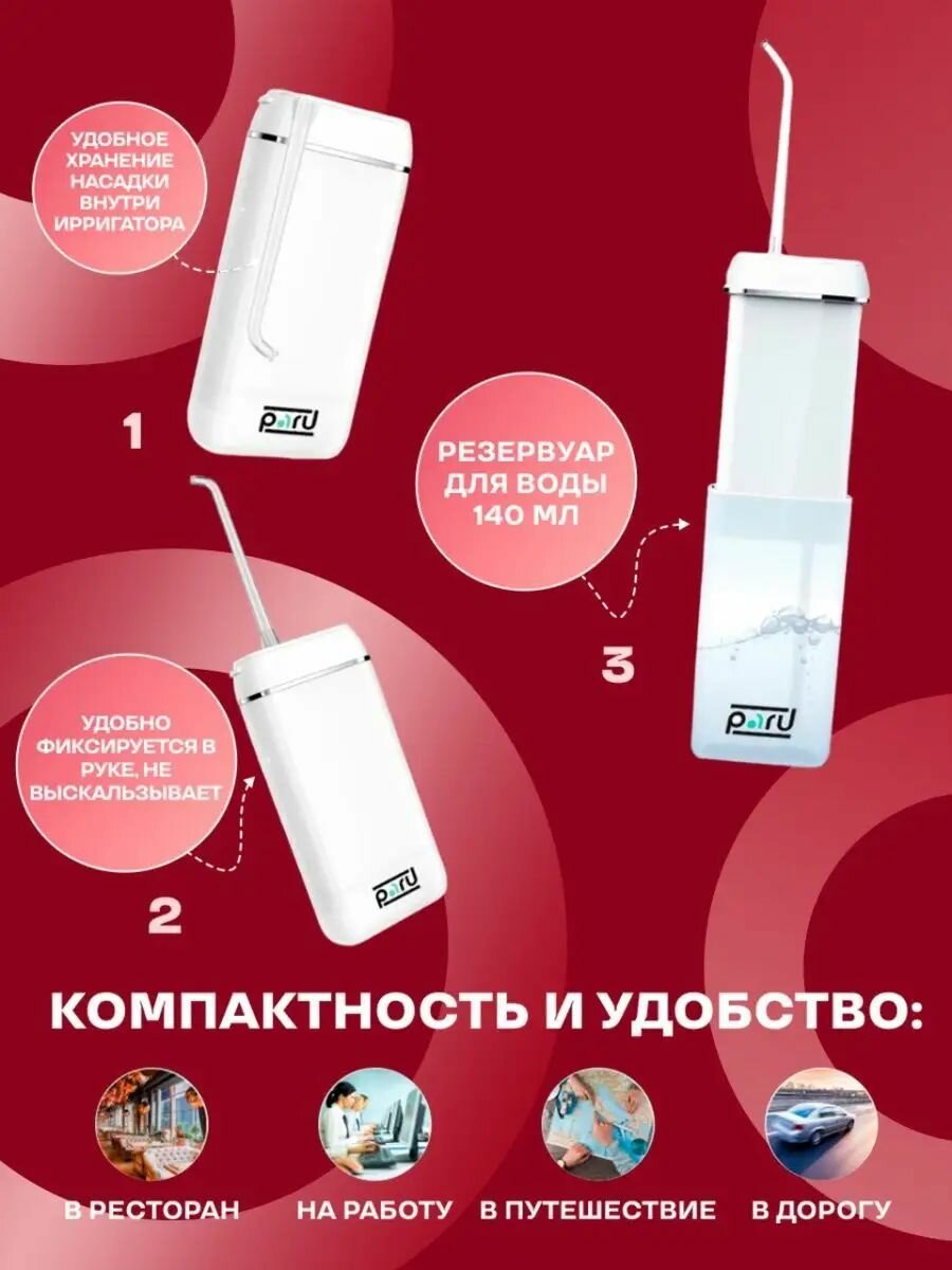 | Дополнительная информация | Ирригатор помогает провести профилактику пародонтоза и кариеса, он безупречно подходит для чистки имплантов, протезов, брекетов и виниров |