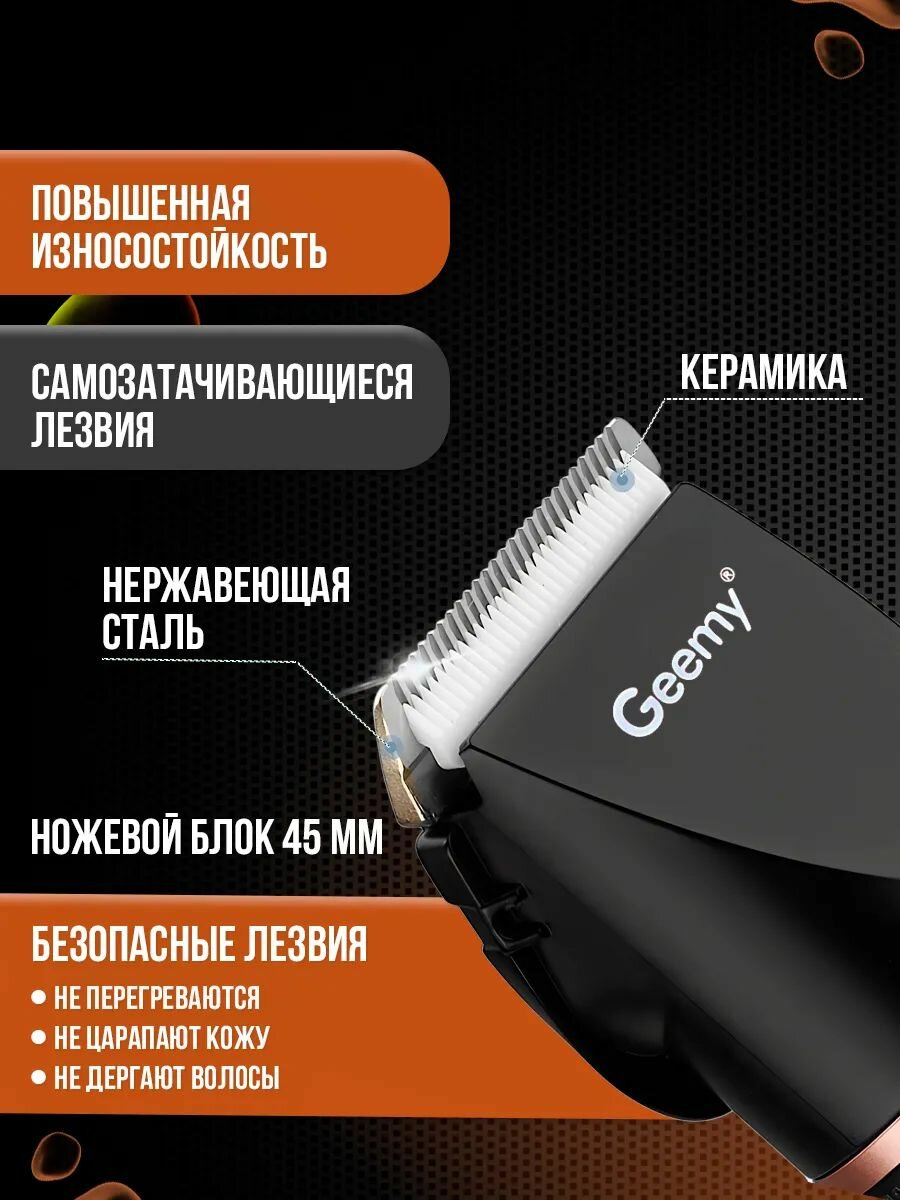 Профессиональная машинка для стрижки мужская Geemy GM-6609/ Черный набор для стрижки/ Триммер/
