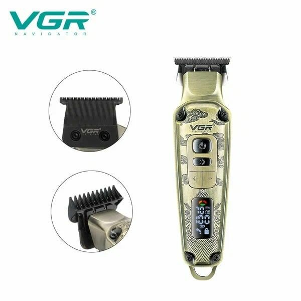 Триммер для бороды и усов VGR V-051, черный / Машинка для стрижки волос профессиональная с 4 насадками / Триммер для волос мужской беспроводной с LED дисплеем