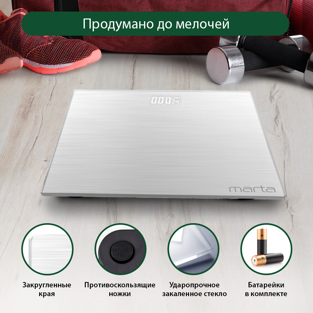 Весы напольные MARTA MT-SC3602 матовая сталь интересное: