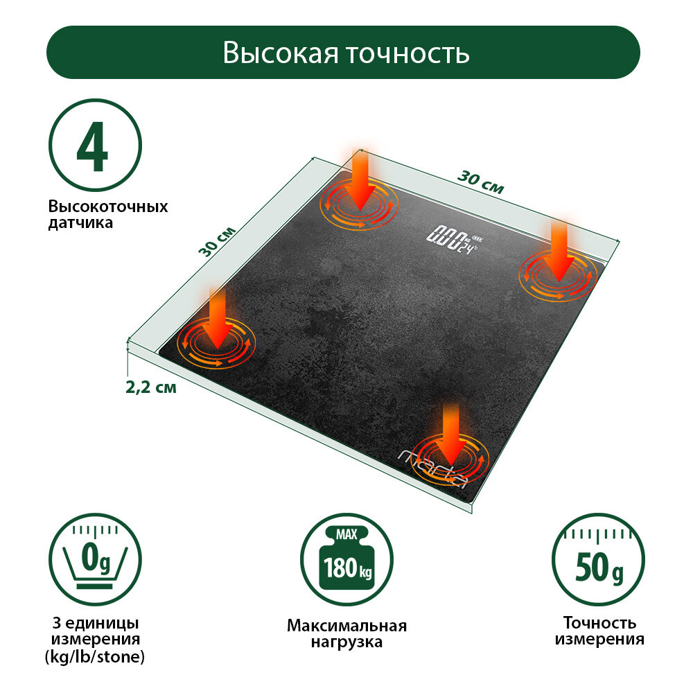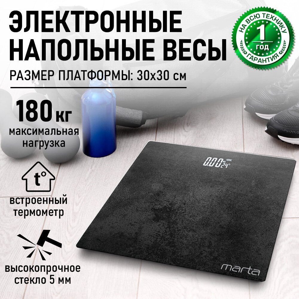 MARTA MT-SC3602 черный мрамор весы напольные сенсор LED дисплей, встроенный термометр