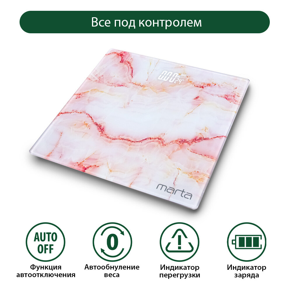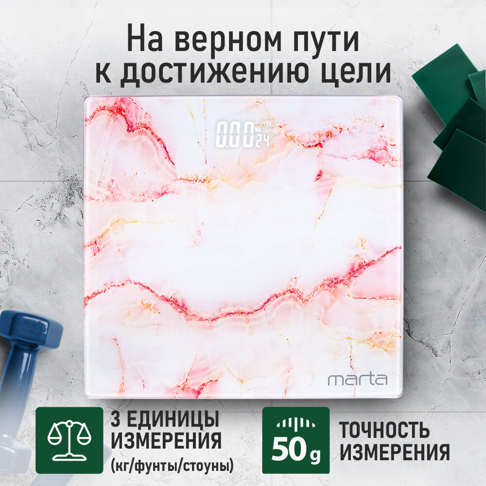 Весы напольные MARTA MT-SC3602 розовый мрамор интересное: