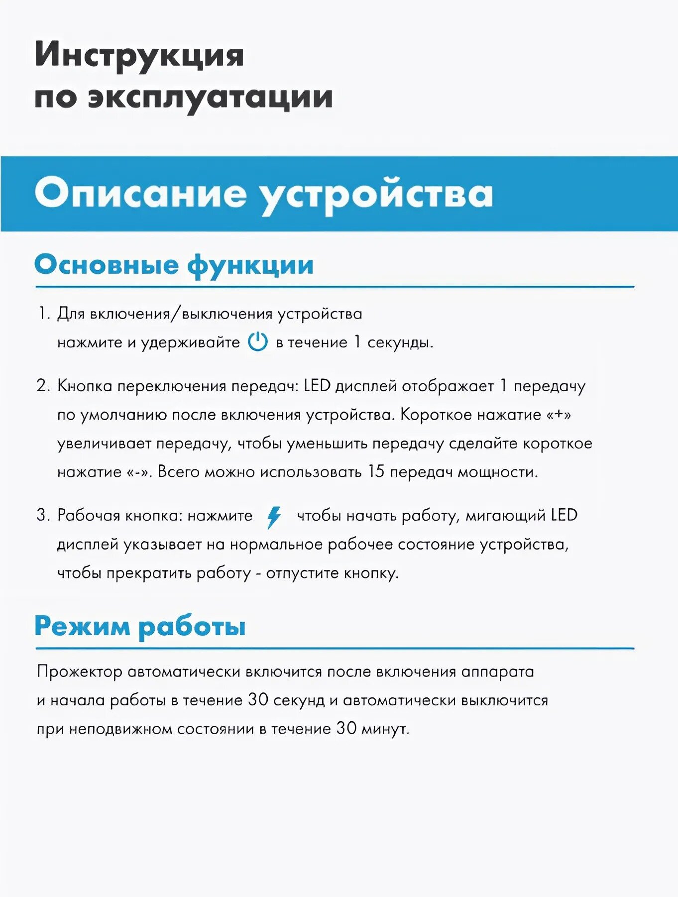 | Время работы от одного заряда | 120 мин. |