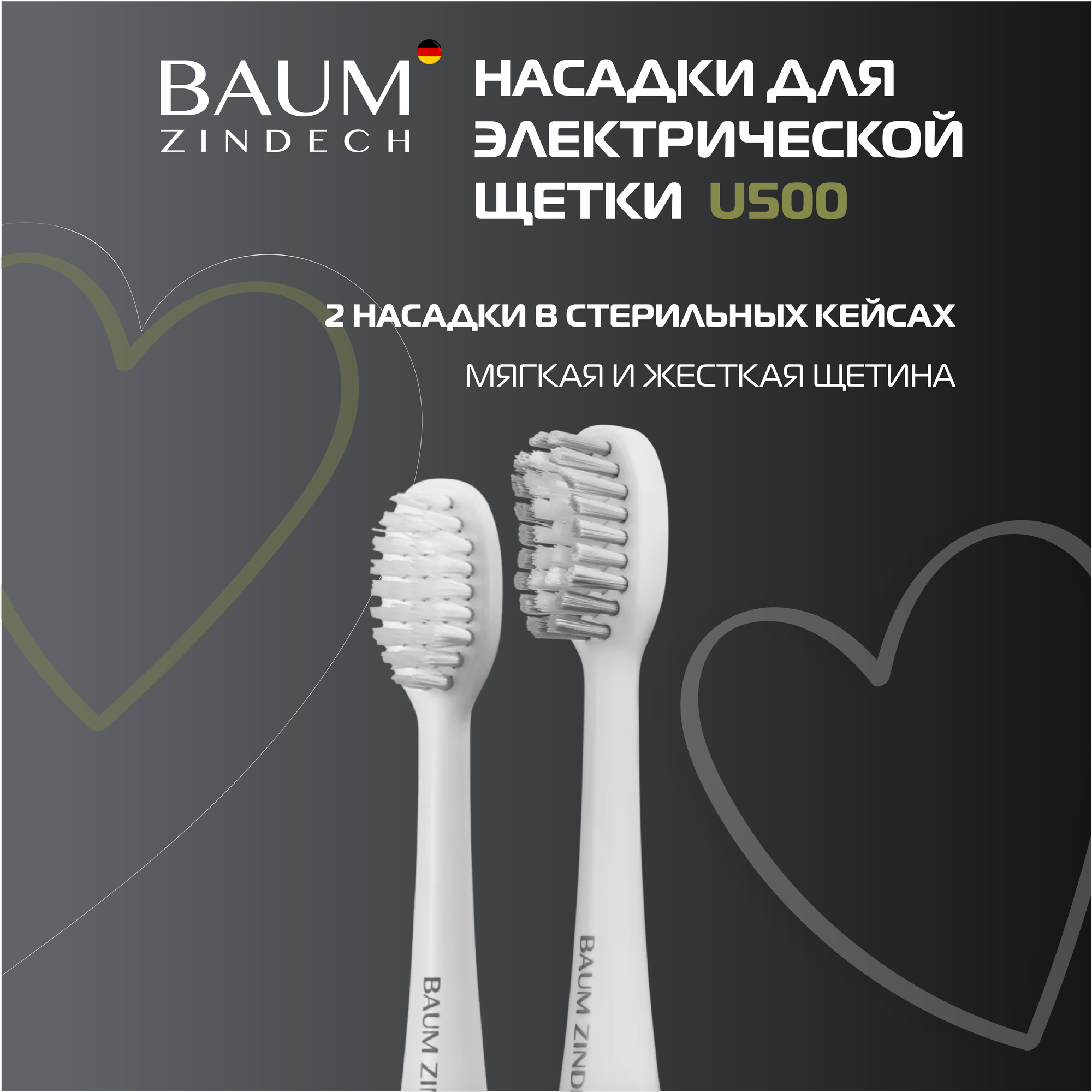 Насадки для зубных щеток BAUM ZINDECH U500, 2 штуки (черный)