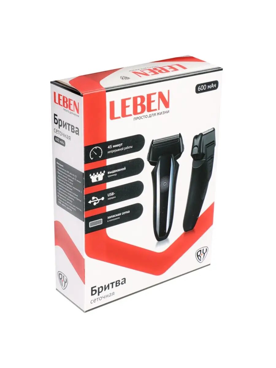 Электробритва мужская сеточная LEBEN, с выдвижным триммером, аккумулятор 600 мАч NI-CD (1.2В) с адаптером