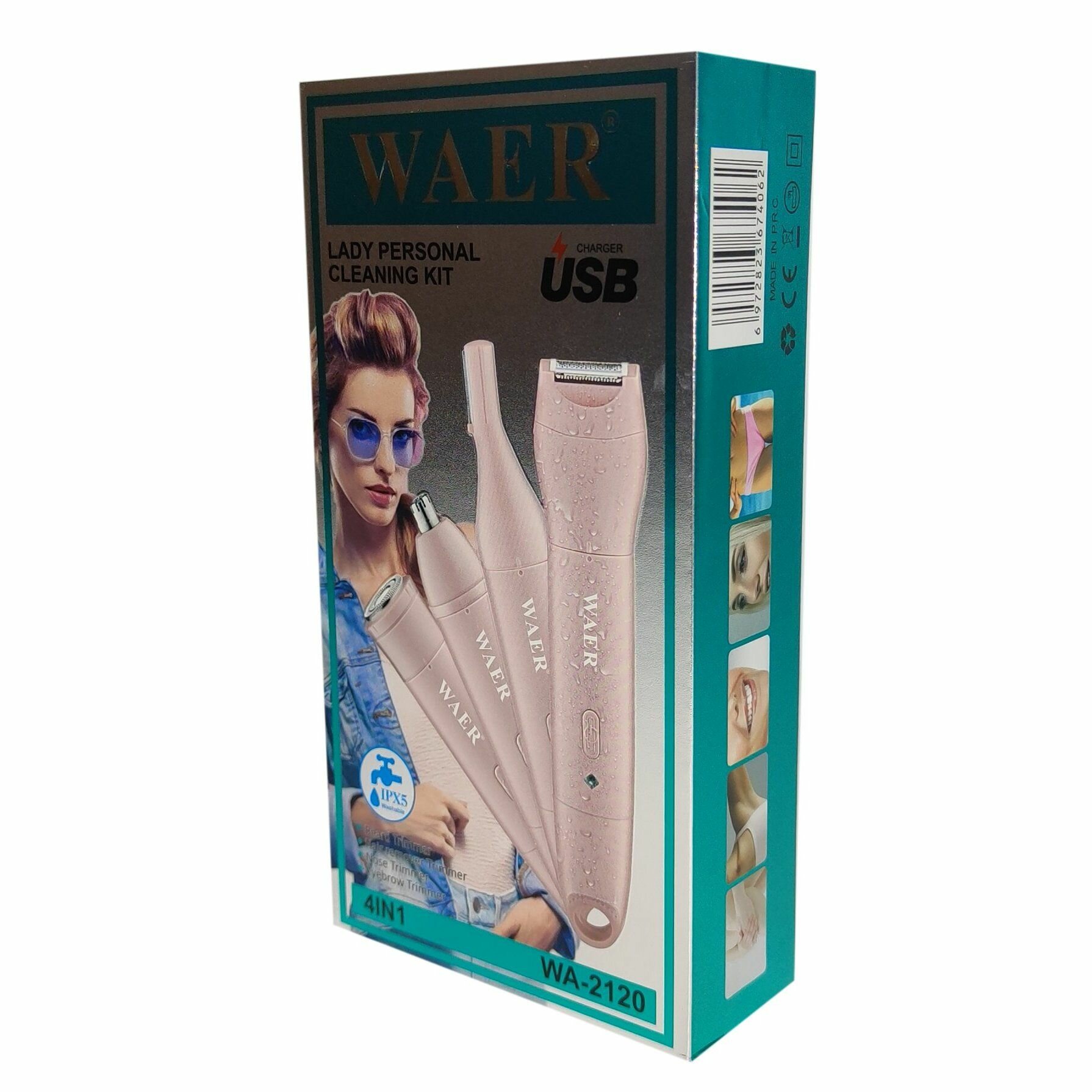 Женский триммер WAER 2120 для зоны бикини, лица и подмышечных впадин 4 в1 аккумуляторный