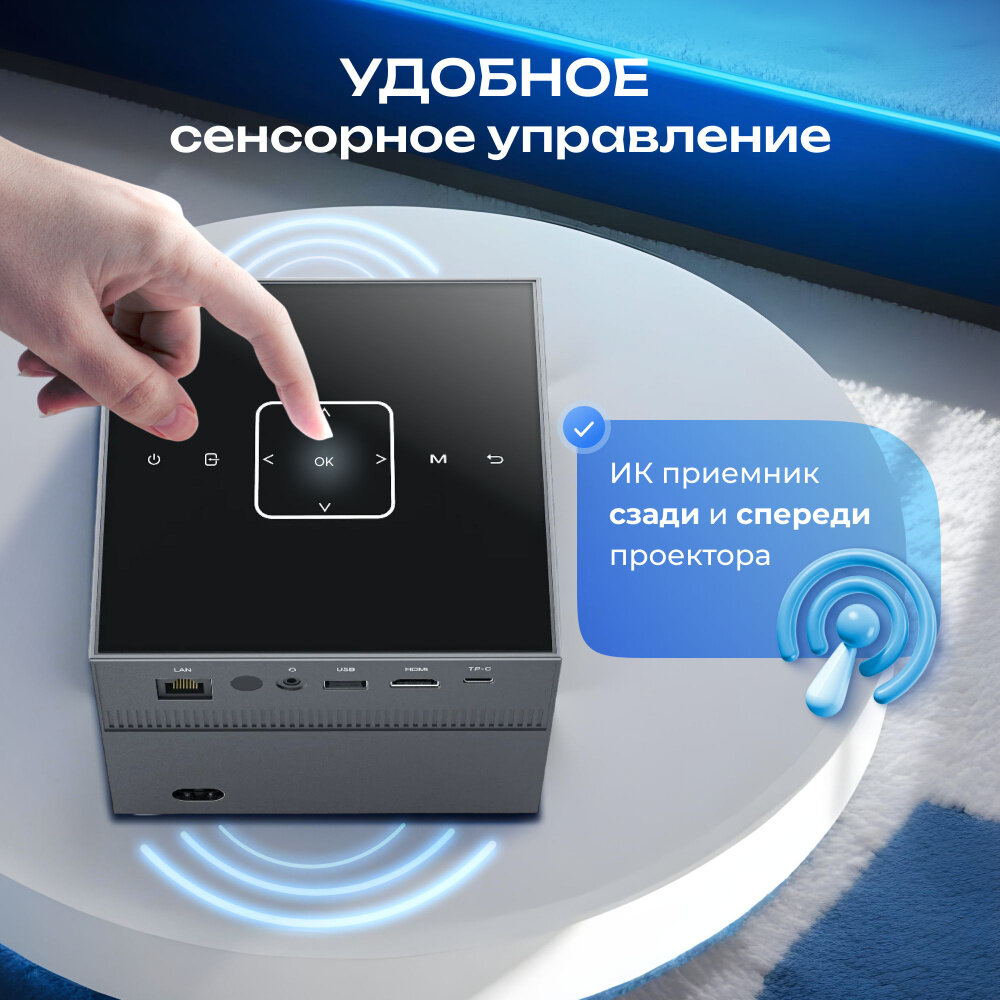 Проектор Full HD Android TV, Портативный проектор 5G, HDMI, Проектор мультимедийный Wi-Fi 1080p, Cерый