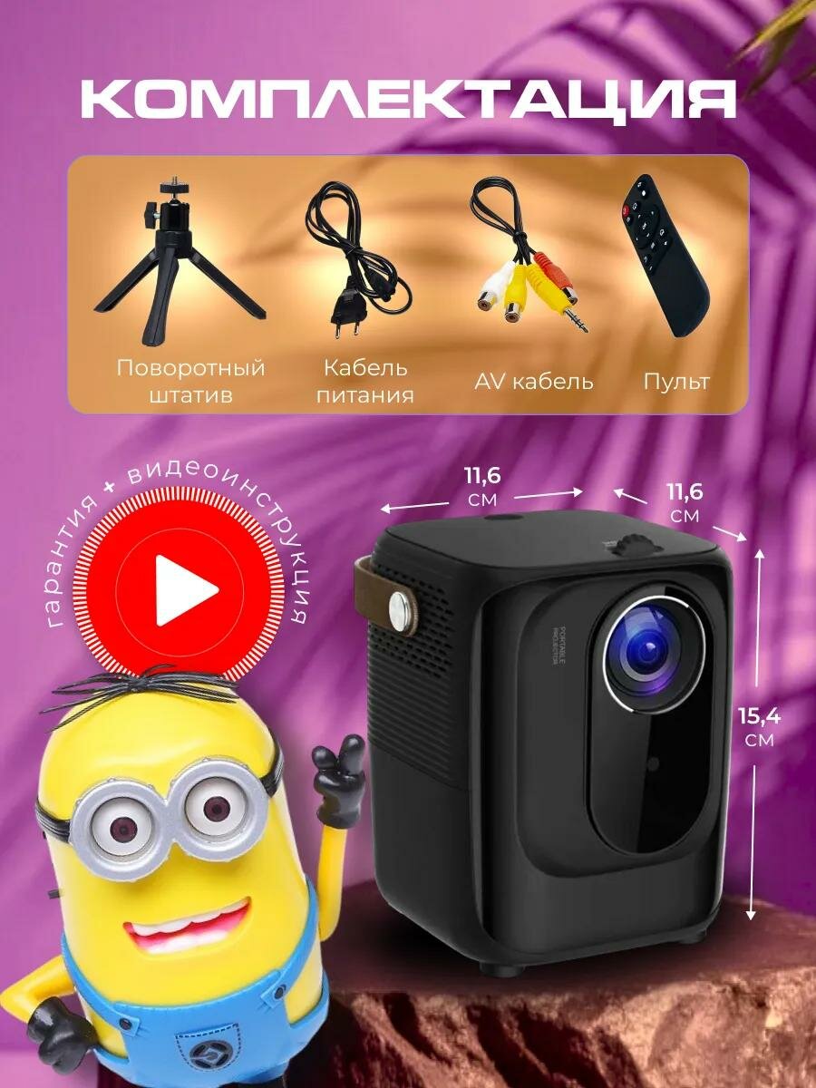 Проектор Umiio Q2(А010) Ultra c разъемом hdmi для работы, фильмов, YouTube, приставок PlayStation или X-Box и других гаджетов / Чёрный