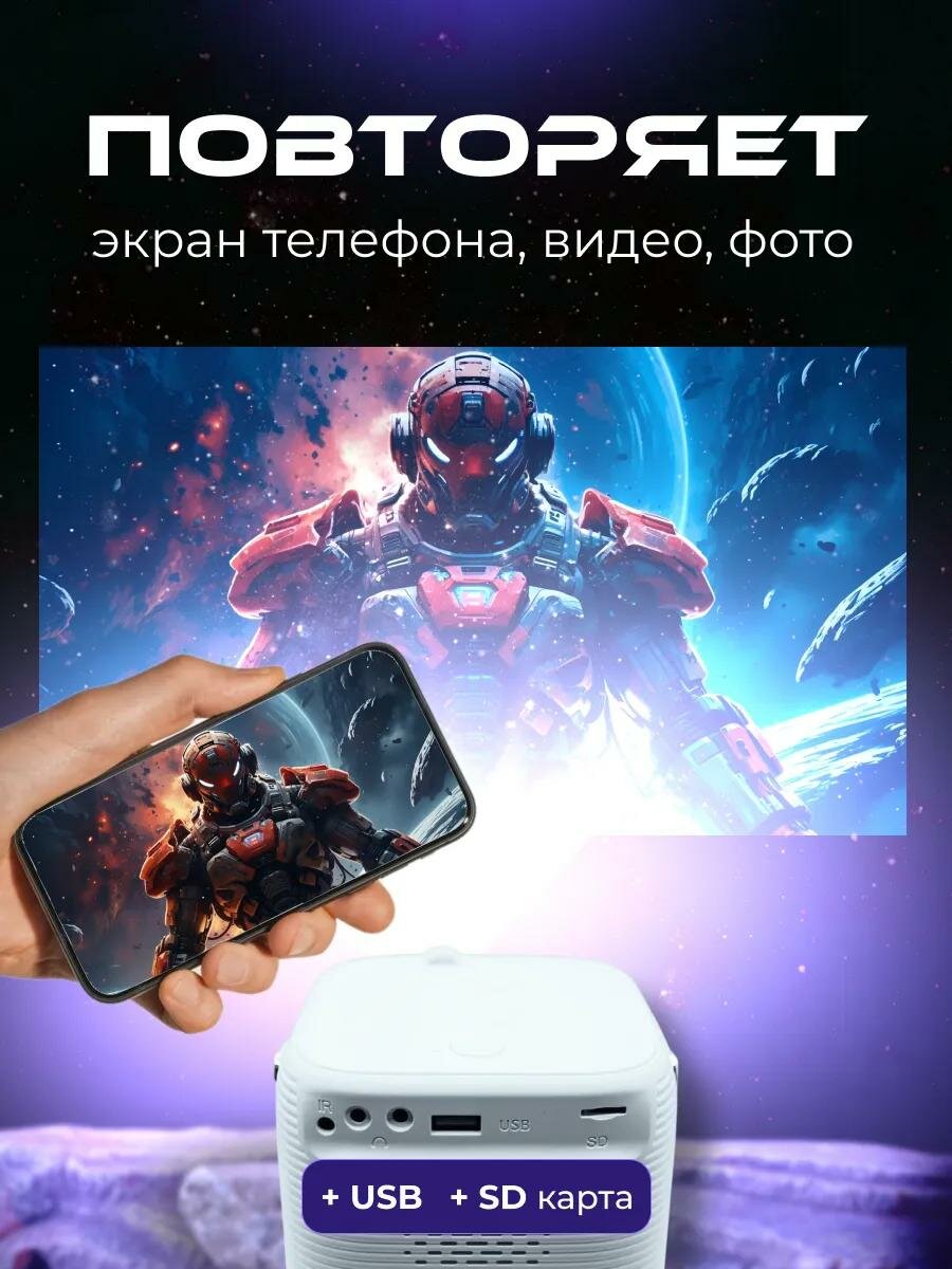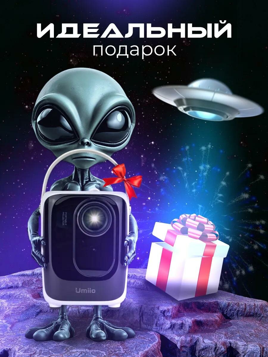 Проектор Umiio Q2(А010) Ultra c разъемом hdmi для работы, фильмов, YouTube, приставок PlayStation или X-Box и других гаджетов / Белый