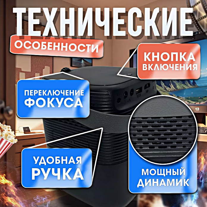 Проектор HY300 HD 720p Android TV, Wi-Fi/5G, HDMI, Портативный мультимедийный, Белый