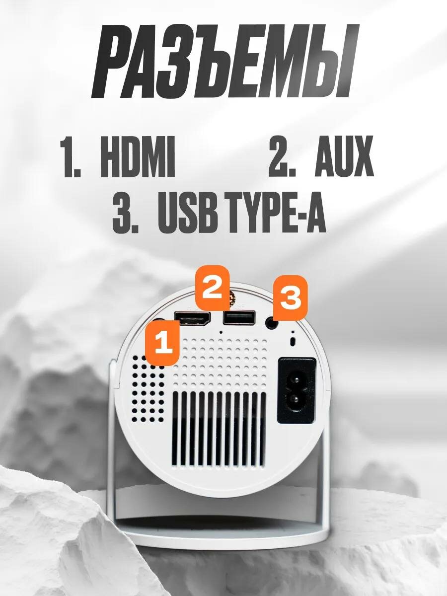 Портативный проектор Umiio Q2(А010) Ultra c разъемом hdmi для работы, фильмов, YouTube, приставок PlayStation или X-Box и других гаджетов. Белый