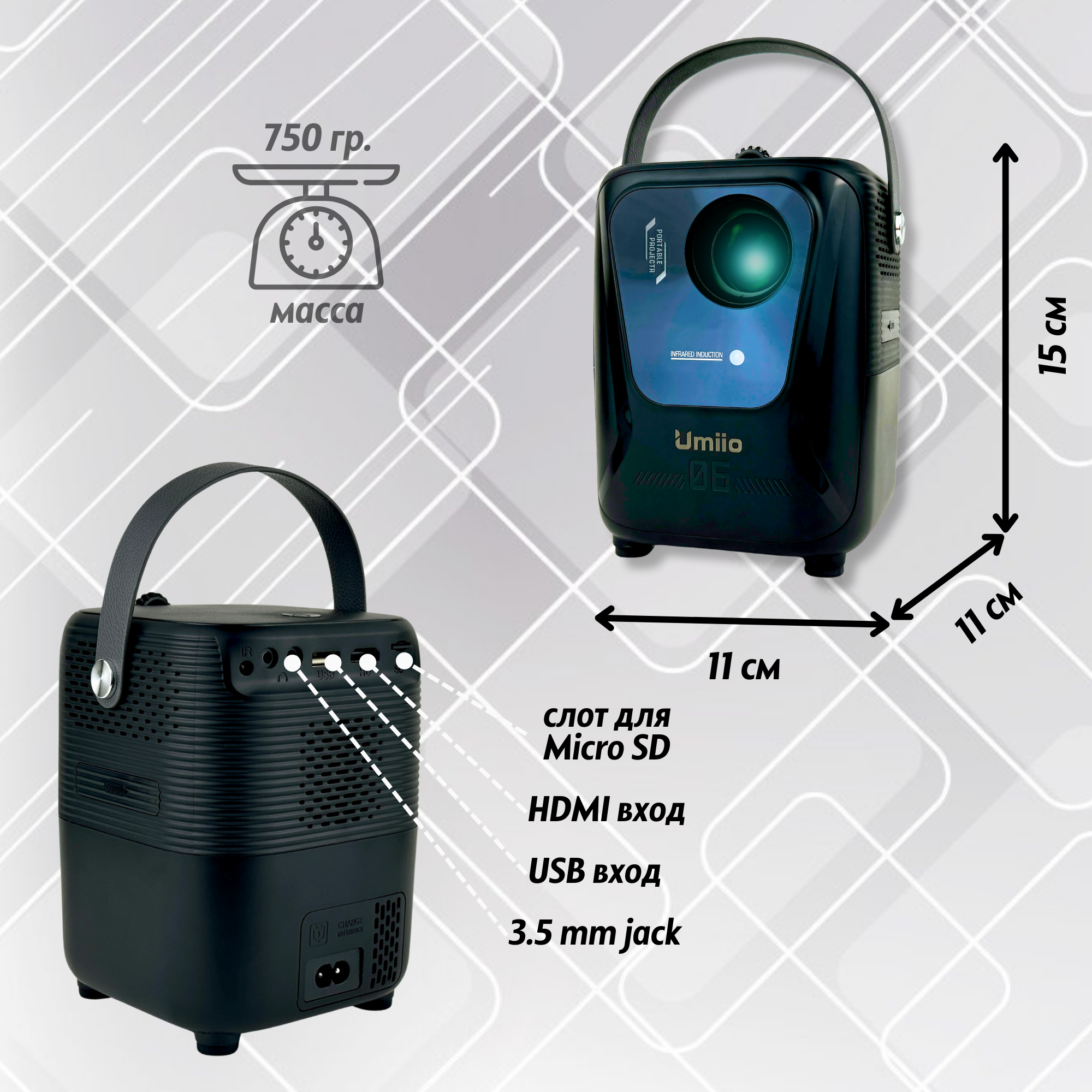Проектор UMIIO Q1 HDMI для приставки и компьютера Wi-Fi 5G Bluetooth, с штативом, черный