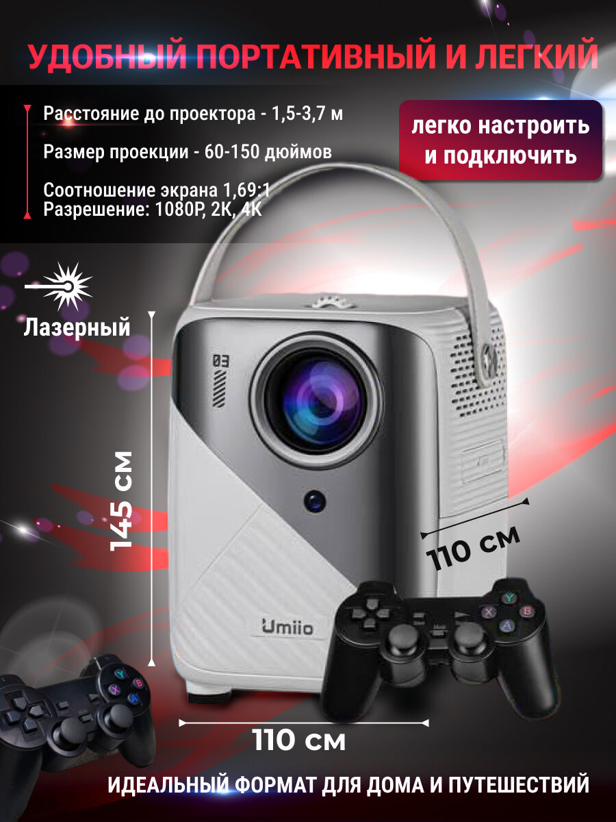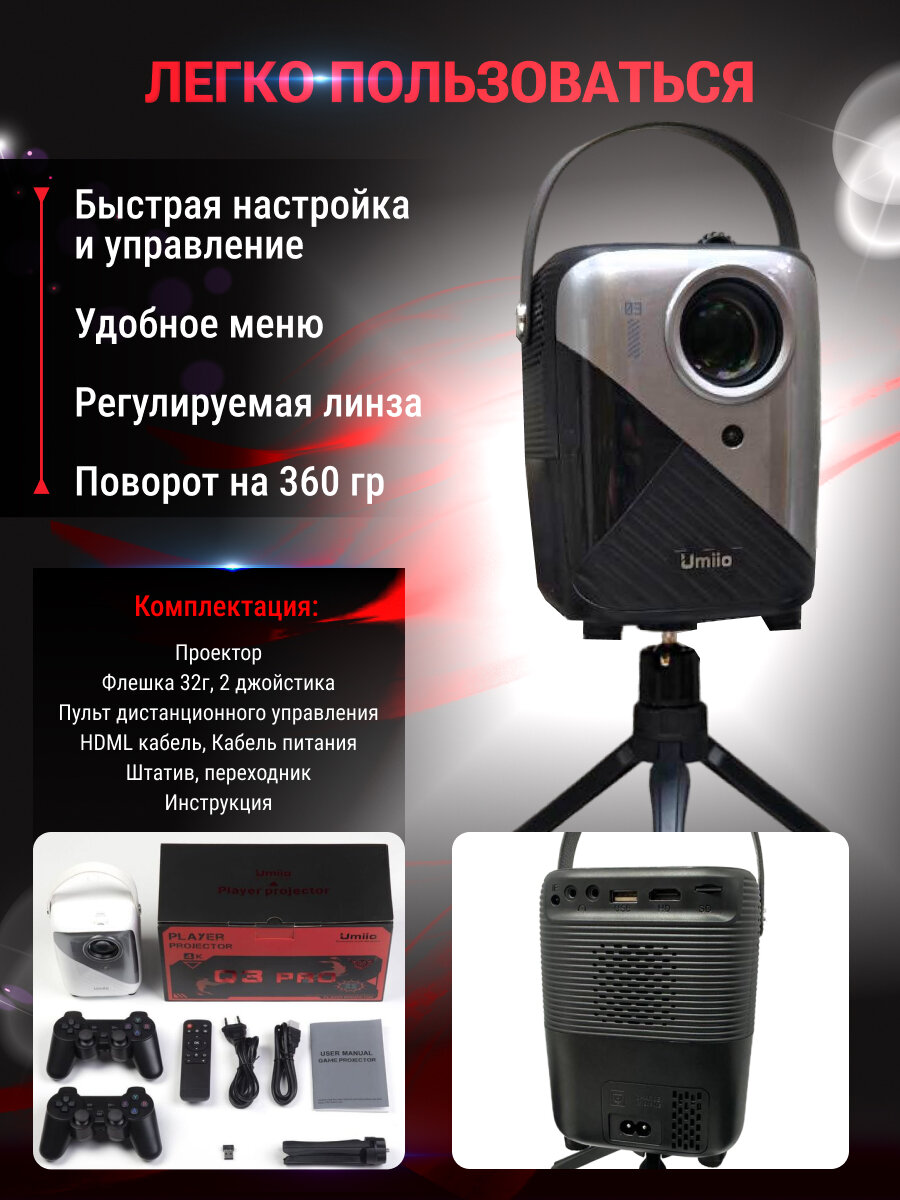 Игровой проектор Umiio "Q4 Pro", разрешение Full HD, беспроводной, с геймпадами, черный