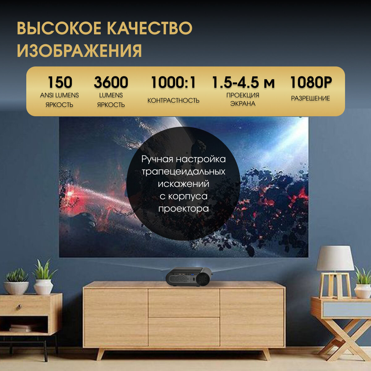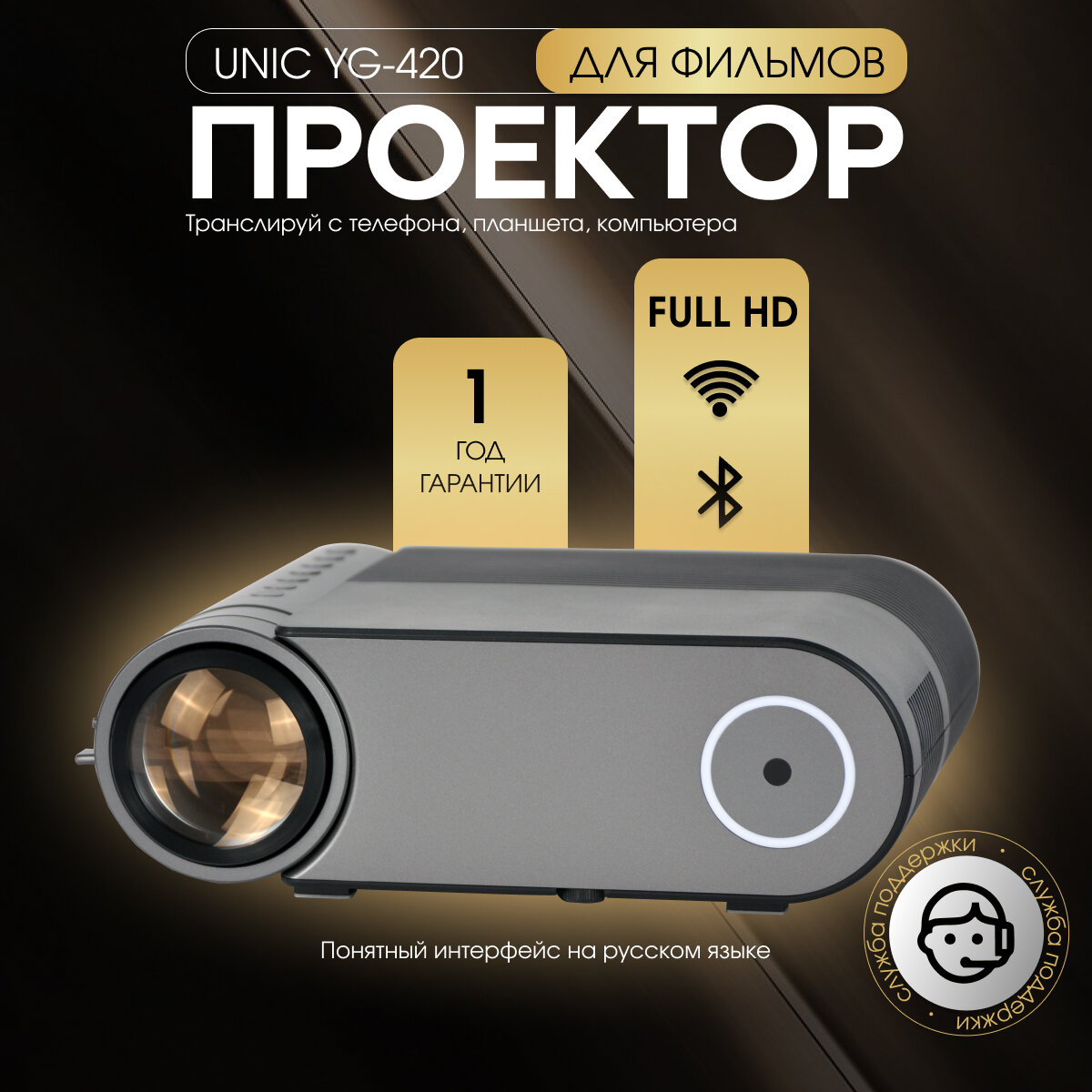 Мультимедийный, домашний проектор UNIC YG-420 Wi-Fi видеопроектор, черный интересное: