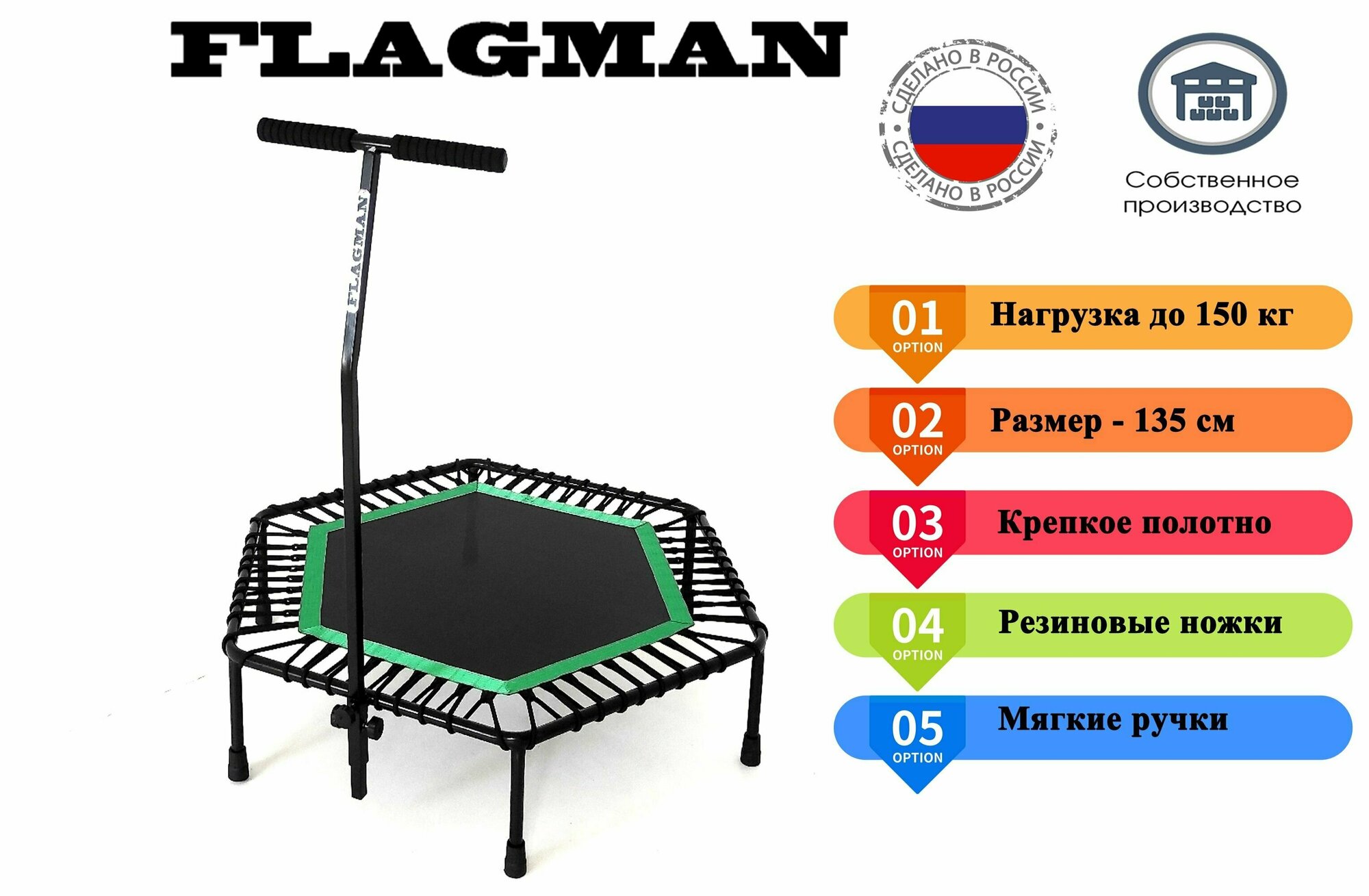 Батут для фитнеса FLAGMAN 135см, с ручкой, максимальная нагрузка 150кг. Цвет зеленый интересное: