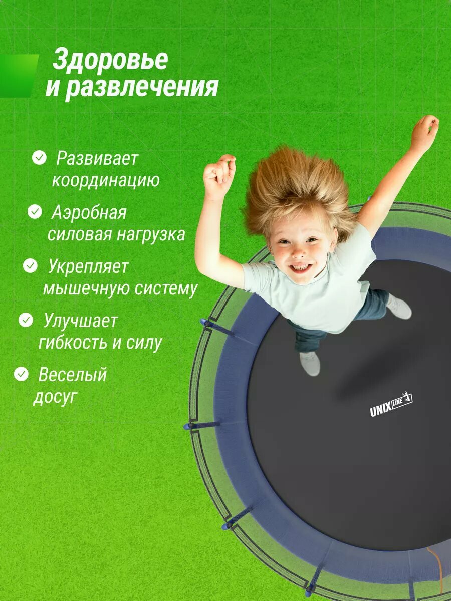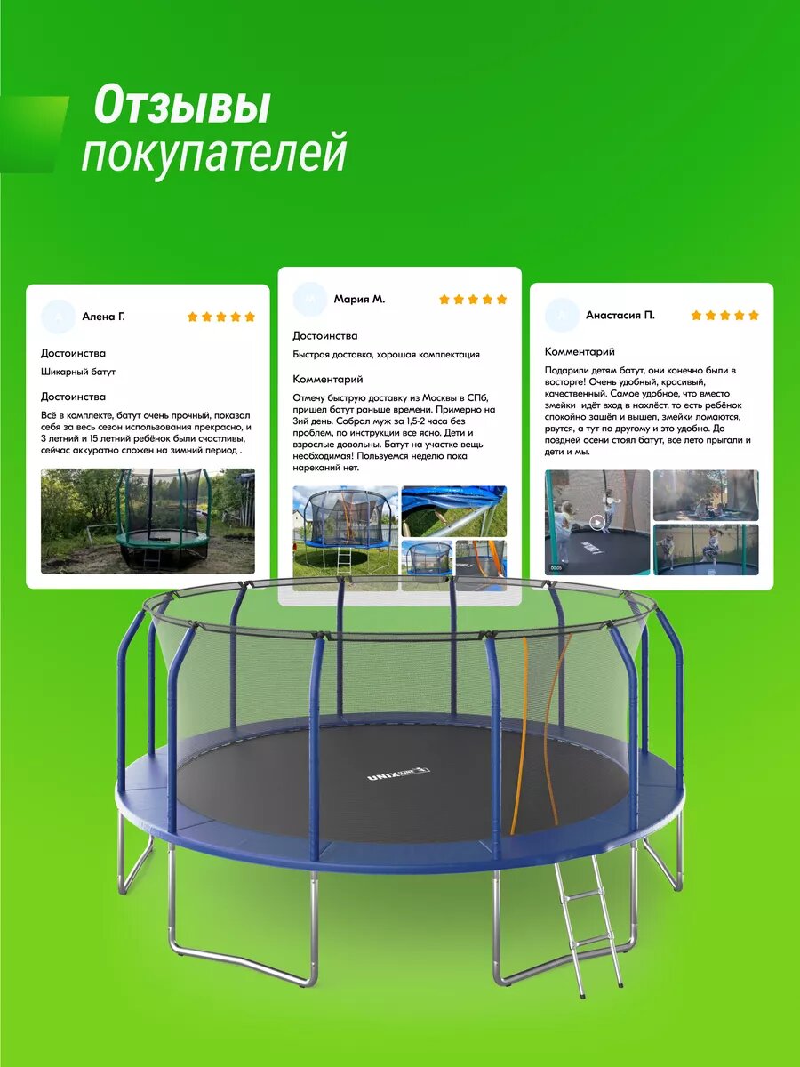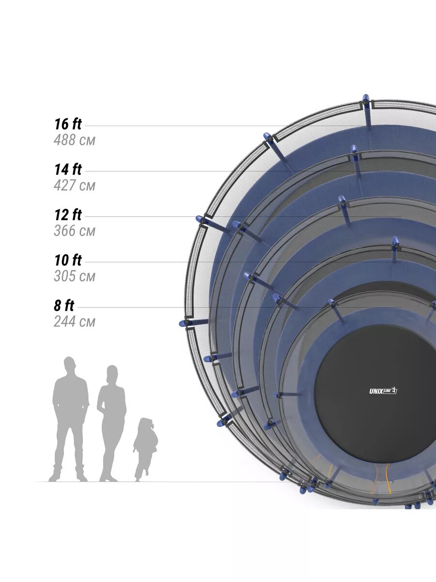 Батут UNIX Line SUPREME BASIC 16 ft (blue), диаметр 488 см, защитной сеткой высотой 170 см интересное: