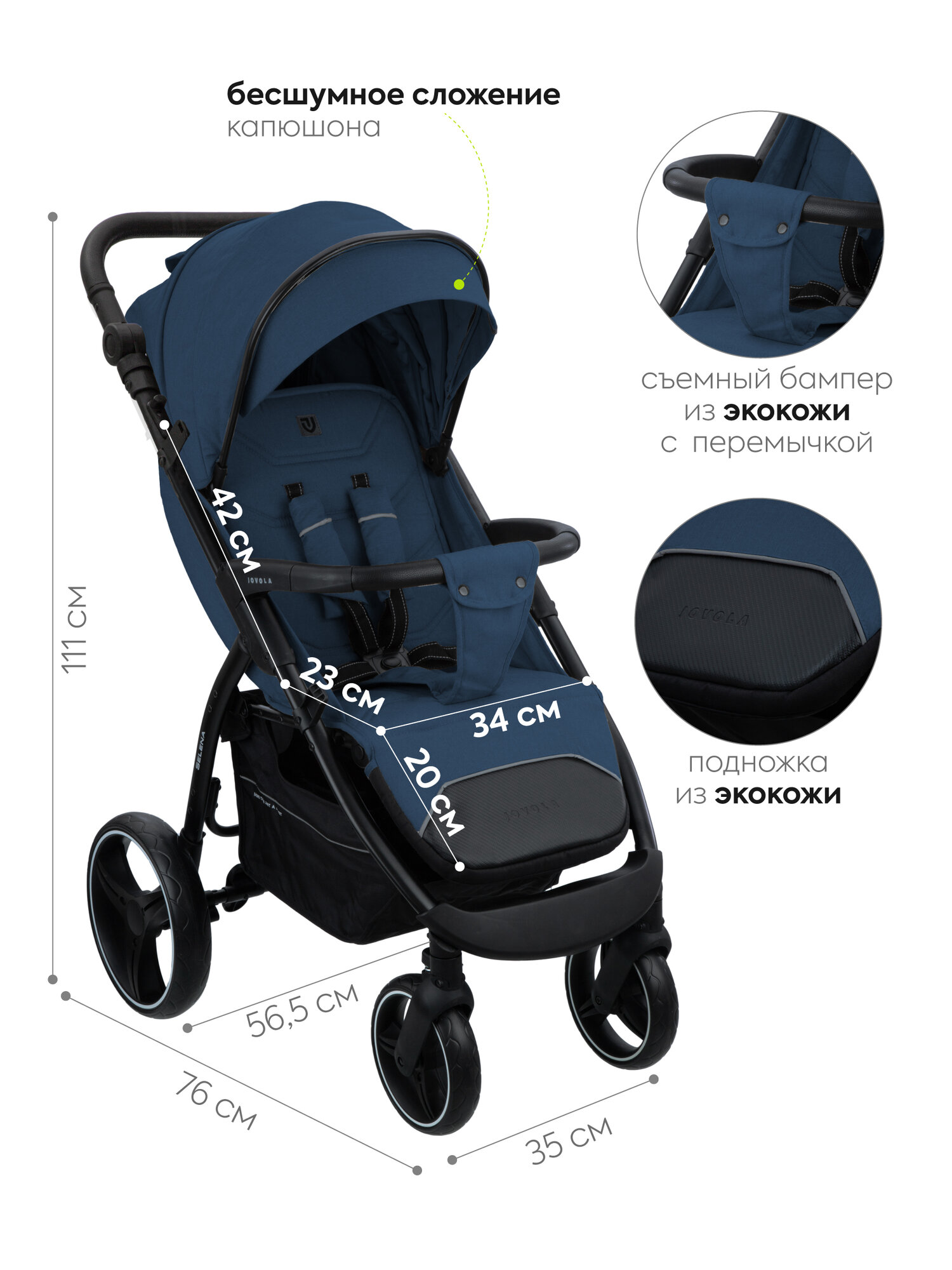 СохранитьДетская прогулочная коляска Jovola SELENA, всесезонная, увеличенные колеса EVA, синяя интересное: