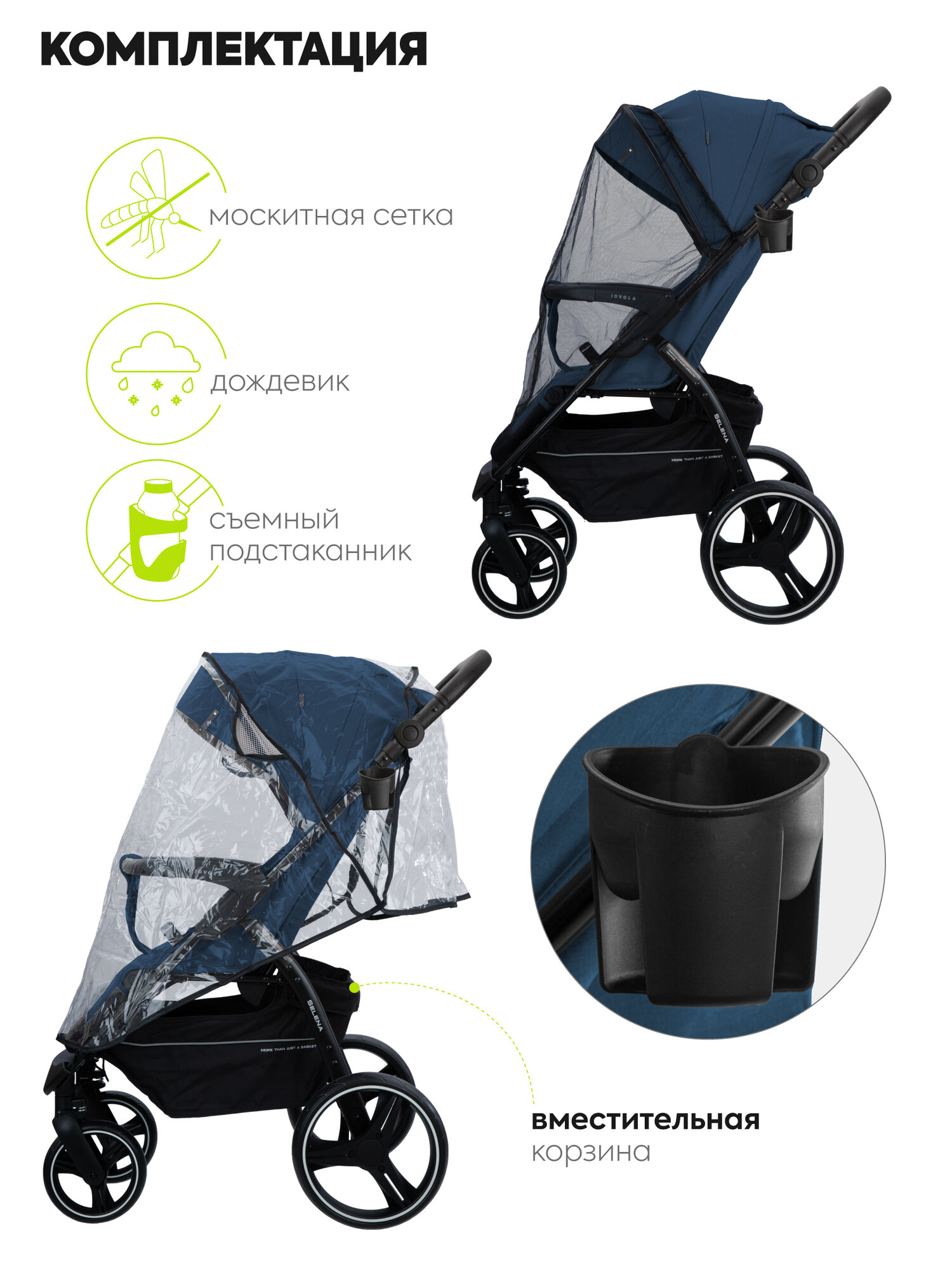 | Аксессуары в комплекте | антимоскитная сетка, бампер, дождевик, накидка на ноги, подстаканник |