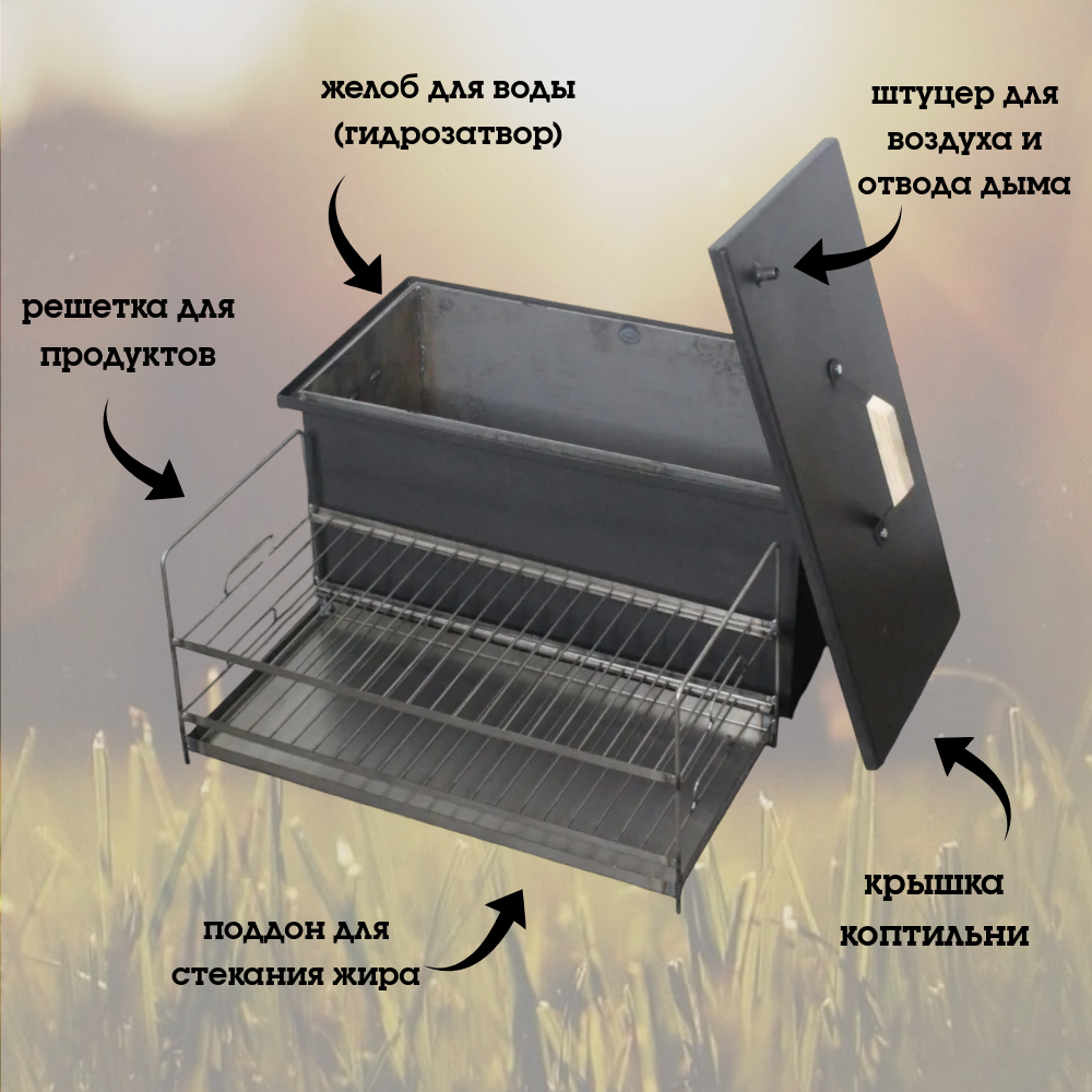Коптильня с Гидрозатвором , 60см x 30см x 30см, сталь, толщина 2 мм, переносная, чёрная интересное: