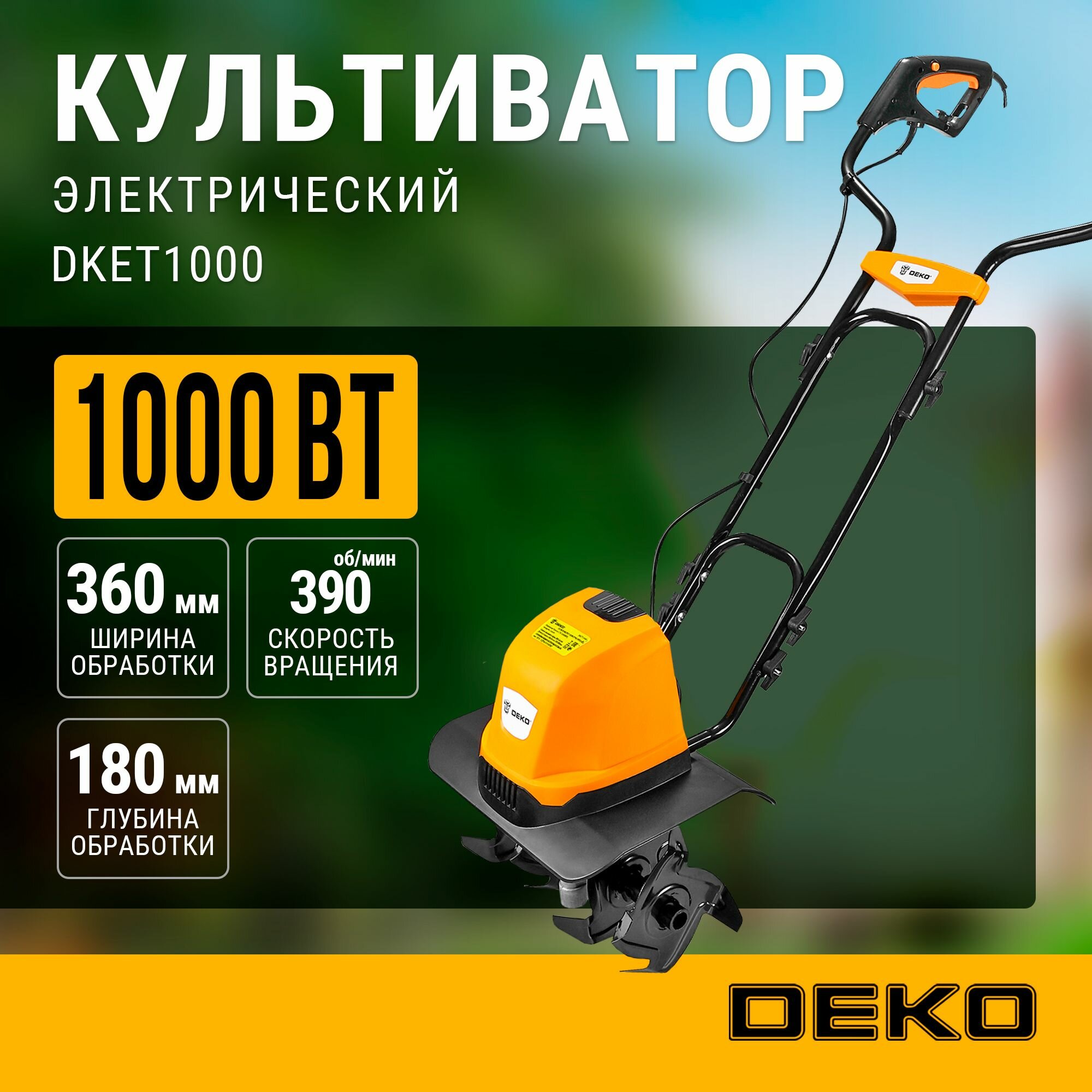 Купить Культиватор DEKO "DKET1000", электрический, 1000Вт, 36х18см, 390 об/мин