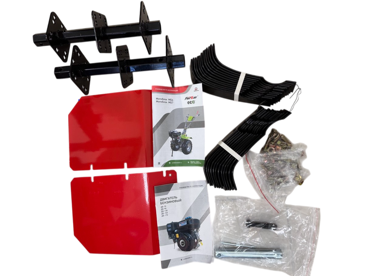 | Комплект поставки | мотоблок, фрезы 6 рядов по 4 ножа, сошник, колеса 4*10, руководство по эксплуатации, упаковка. |