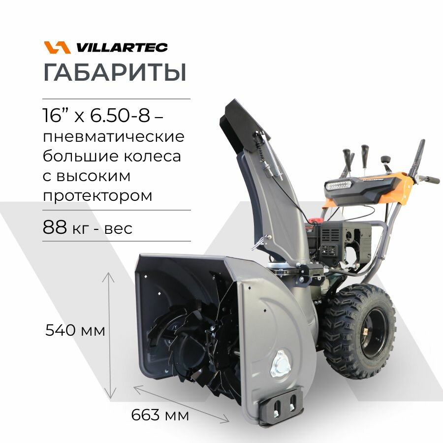 Снегоуборщик бензиновый самоходный с электростартером, подогревом ручек и светодиодной фарой VILLARTEC WB7066E 7л. с. интересное: