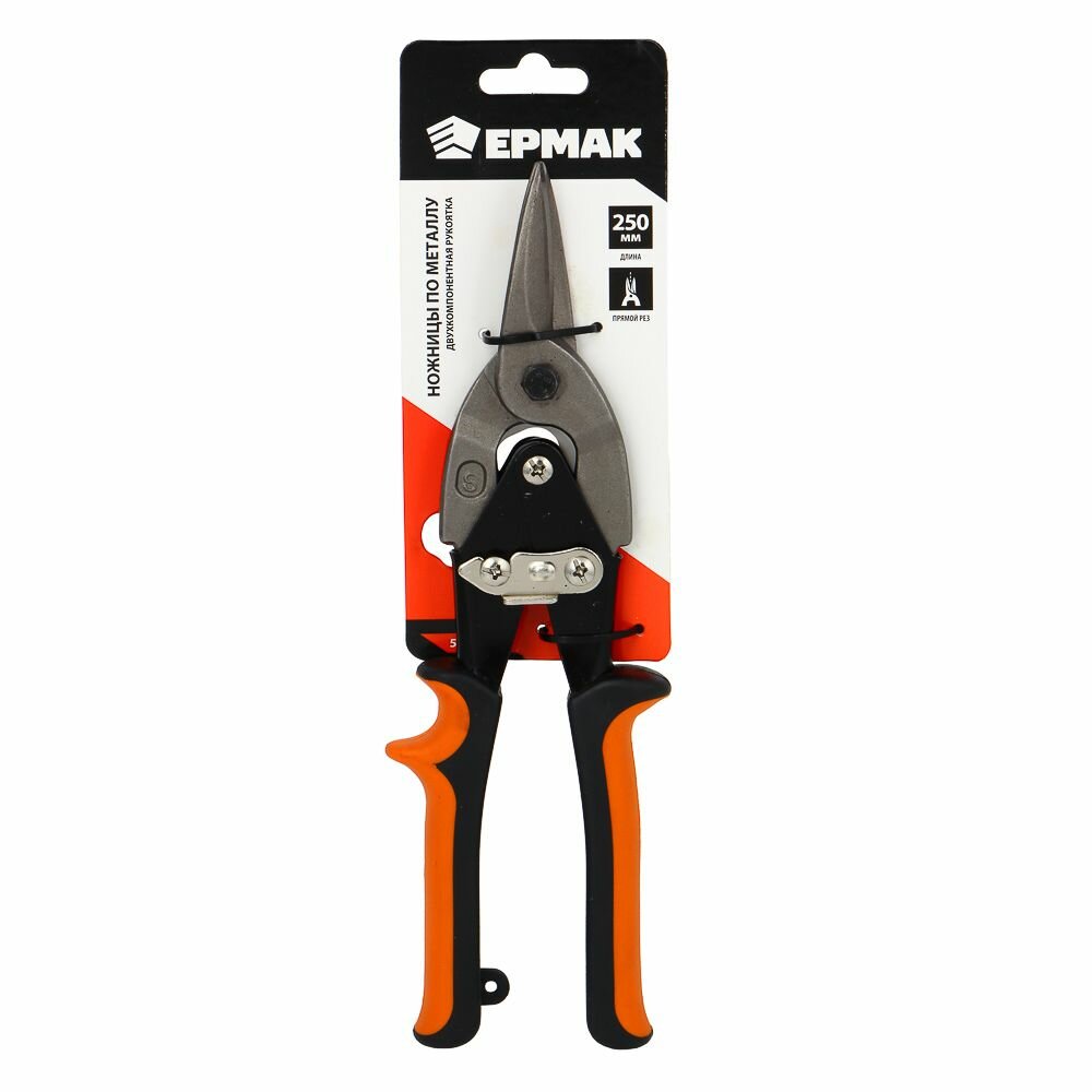 Купить Ножницы по металлу ЕРМАК 250 мм, двухкомпонентная рукоятка, прямой рез/ Ножницы строительные