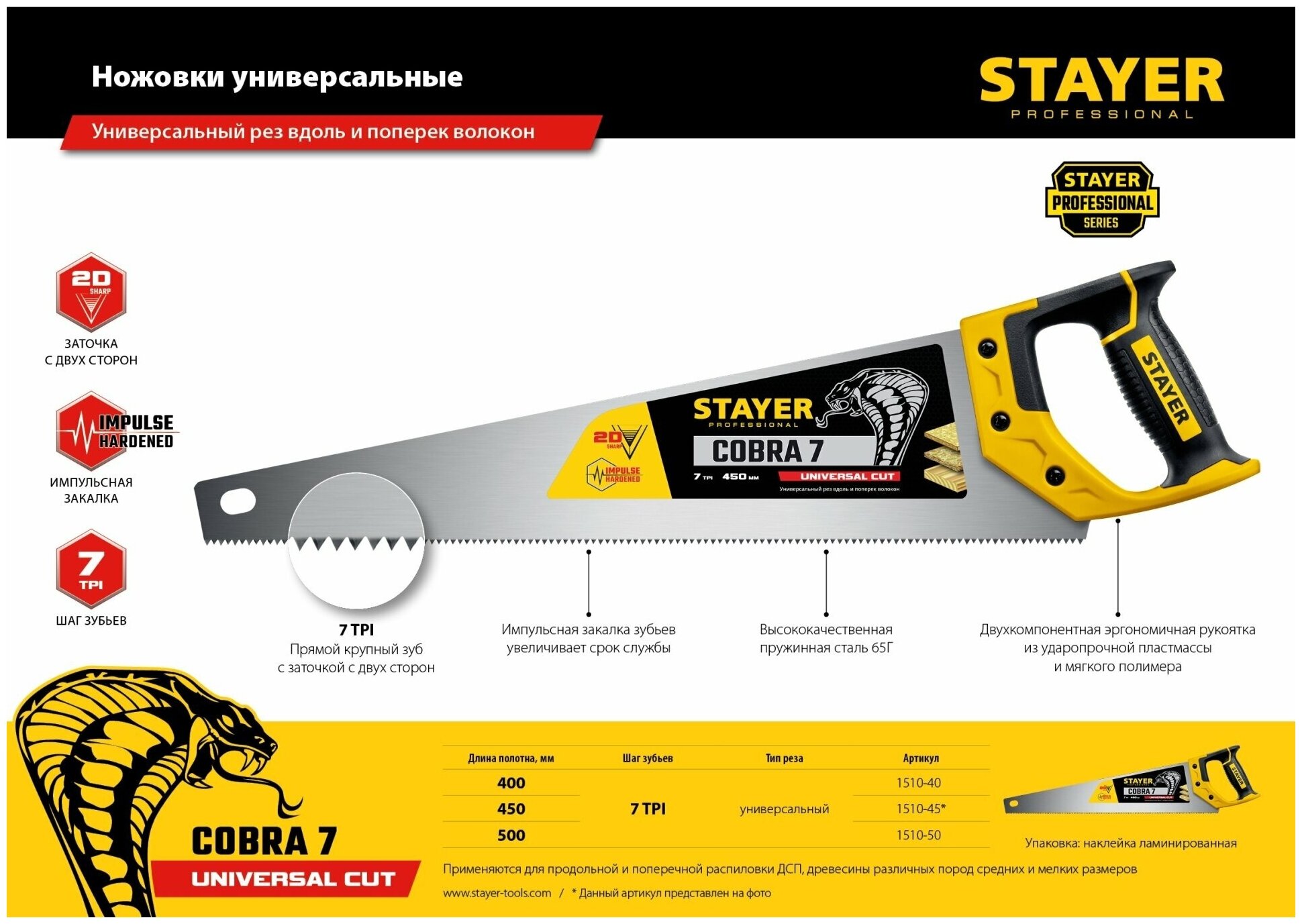 STAYER Cobra 7 450 мм, Универсальная ножовка (1510-45)