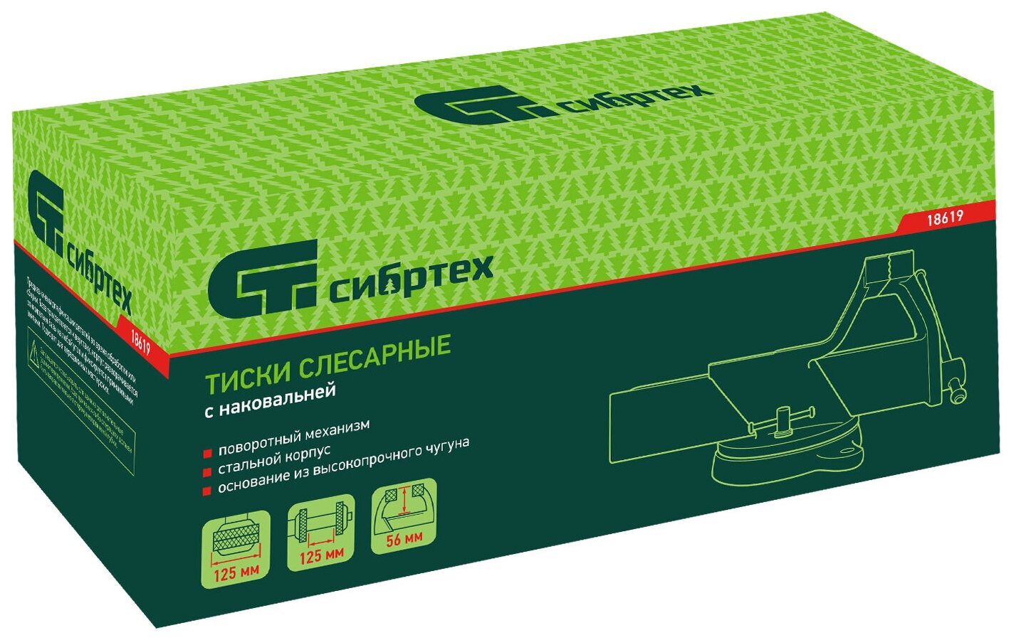 Тиски слесарные поворотные Сибртех, 125 мм ширина губок и 125 мм рабочий ход, стальной корпус и чугунное основание 18619 интересное: