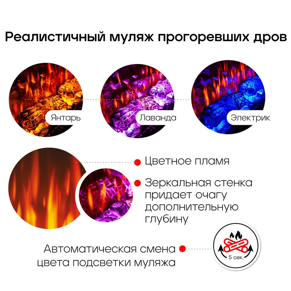 | Дополнительная информация | Имитация пламени, Пульт ДУ, Регулировка высоты, Режим работы без нагрева, Таймер, Термостат, Информационный дисплей |