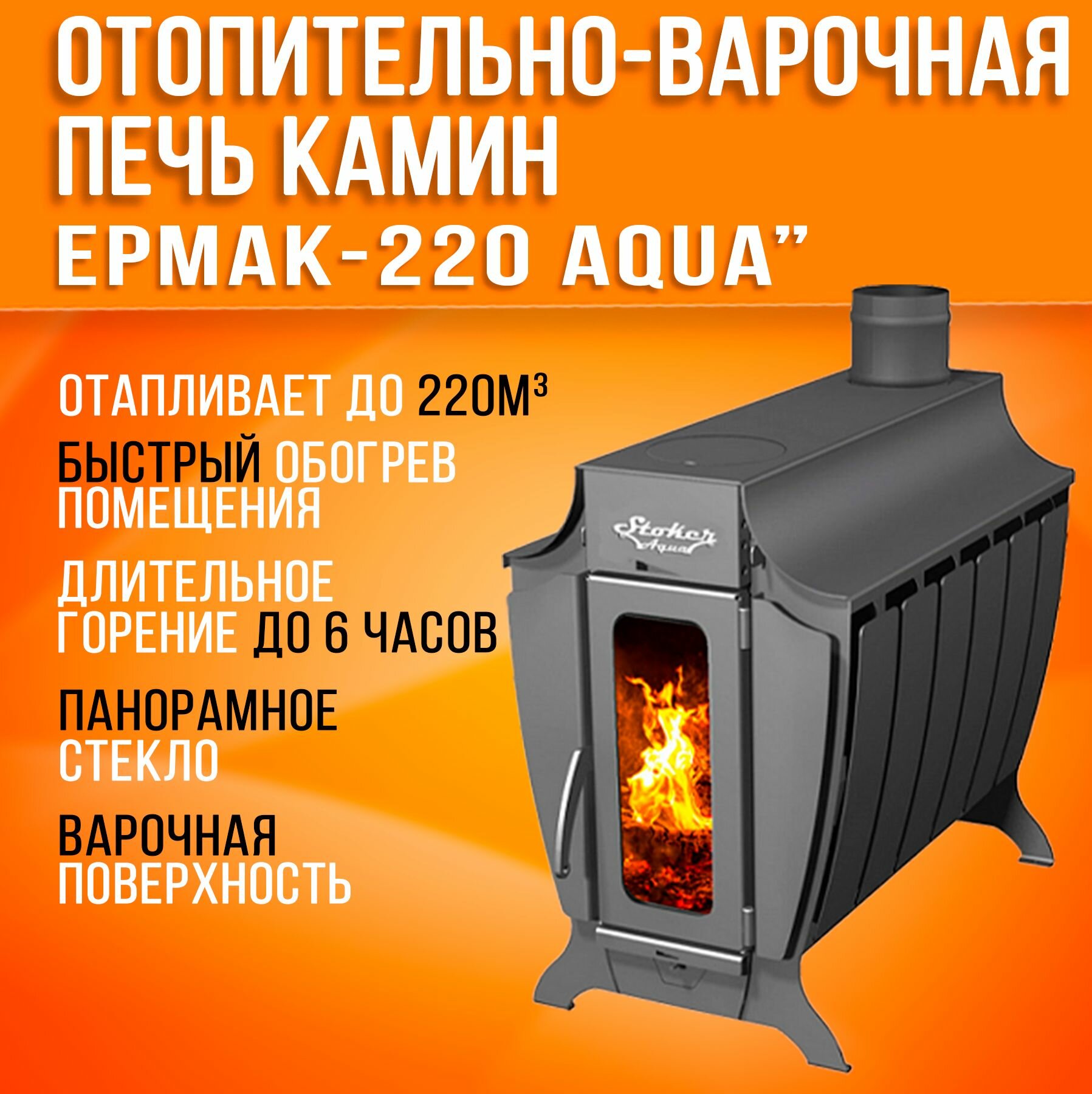 Купить Печь отопительная Stoker 220 Aqua-G d115 (220 куб. м)