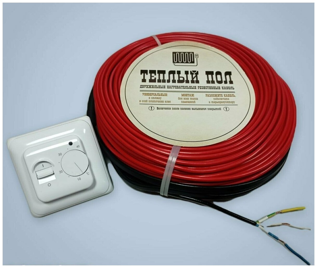 Теплый пол электрический под плитку, греющий кабель 80м. п. с терморегулятором механическим