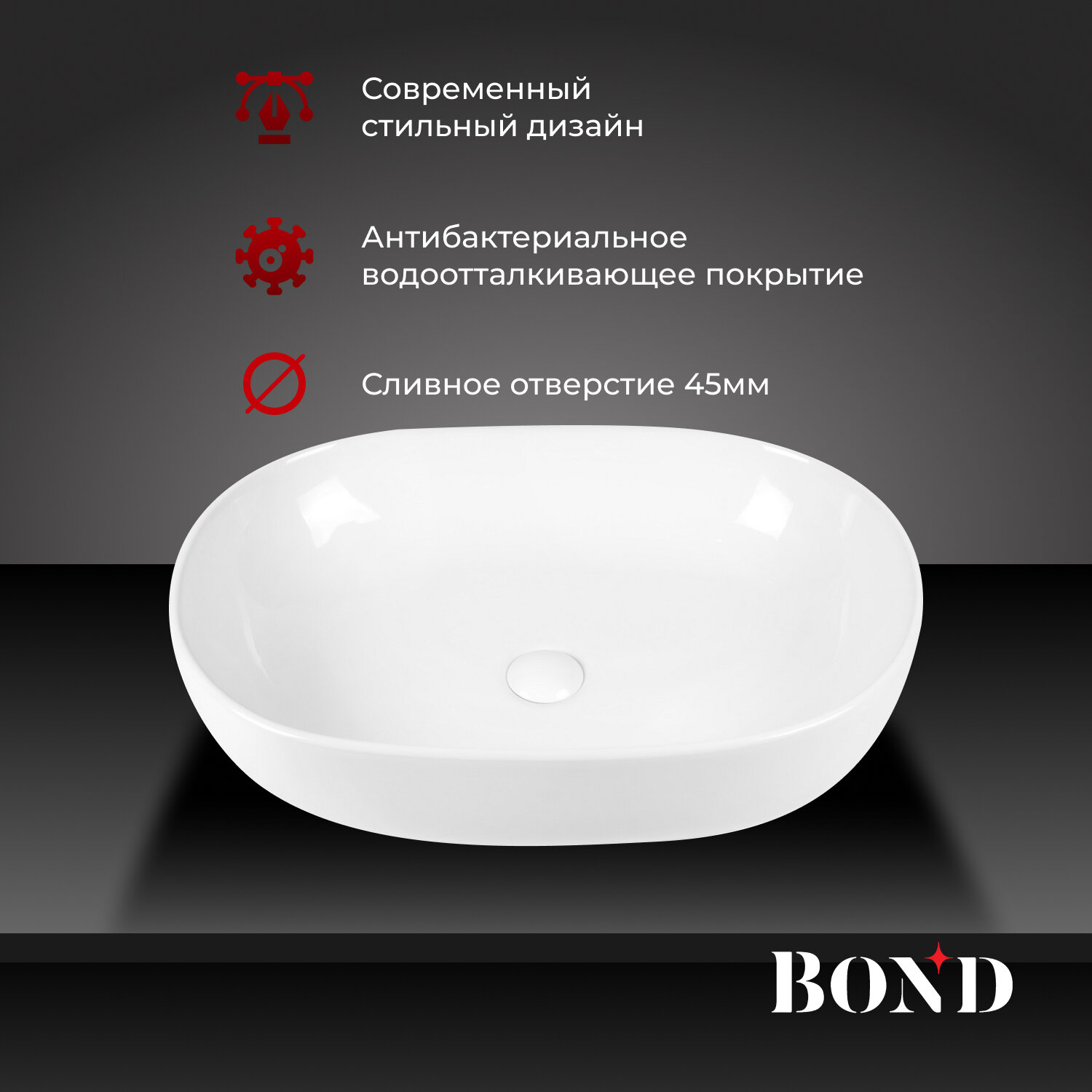 Раковина накладная BOND S51-600 овальная 60*40*13,5см белая